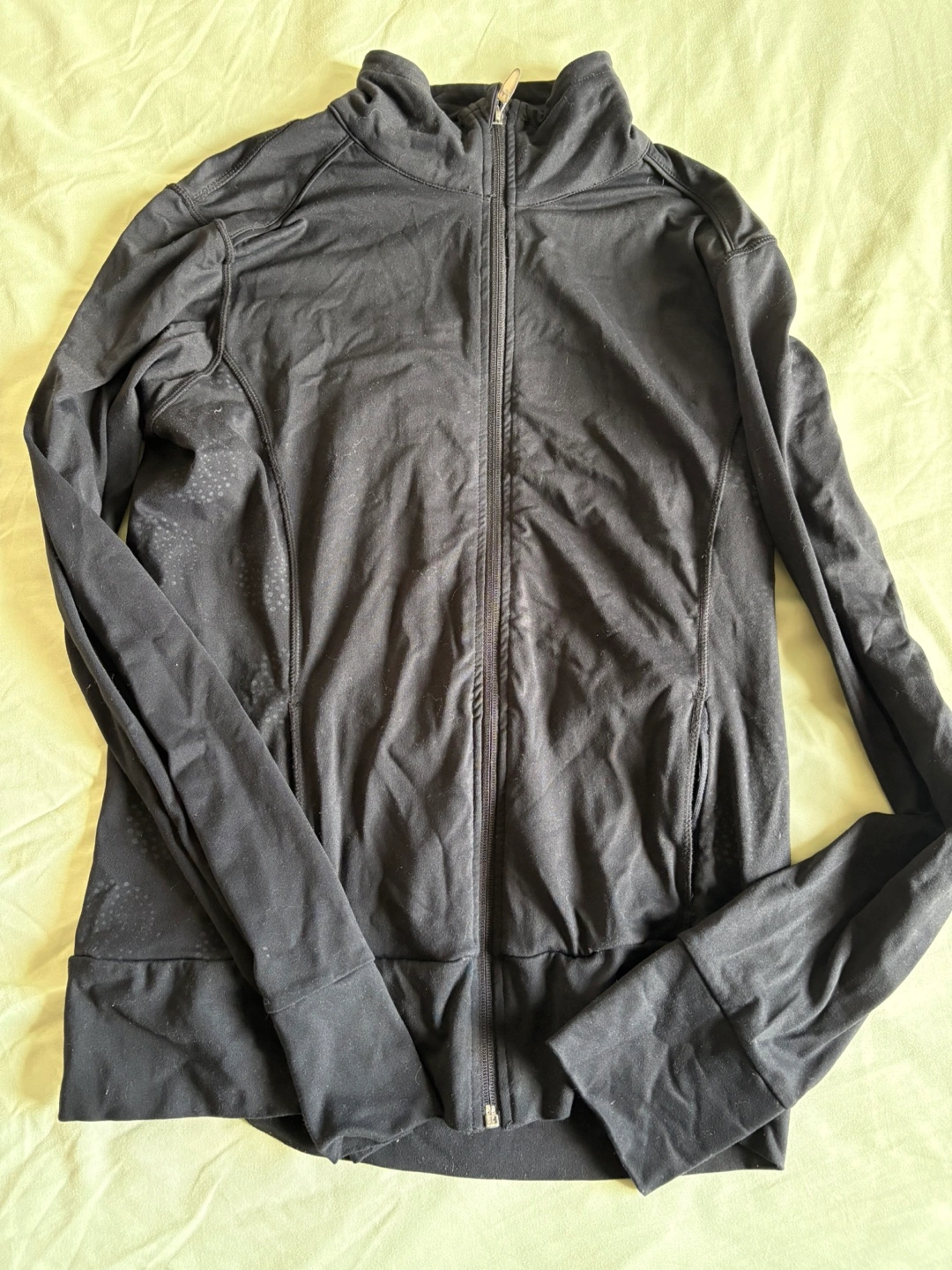 Selling a black jacket. It's in great condition and ready for a new home! Perfect for workouts or casual wear. Unsure of the brand. Assuming its a small. Payment: Cash only Location: Rossland and Church or Durham College Oshawa