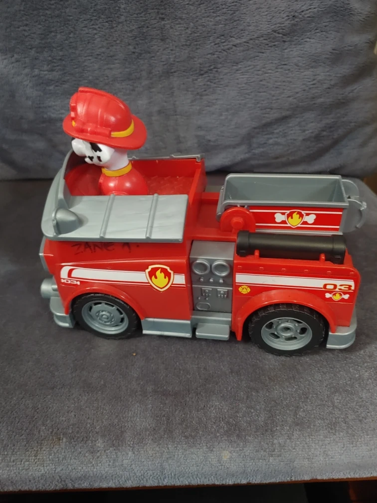 Selling a Paw Patrol Marshall fire truck toy! It's in great condition and ready for a new home. Perfect for little ones who love the Paw Patrol series