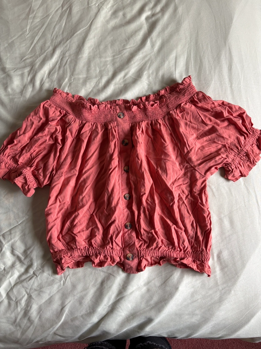 Selling a cute Suzy Shier off-shoulder top in a lovely pink colour! It's a size medium and made of 100% rayon, making it super comfy and breathable. Perfect for a casual day out or dressing up for a fun evening. Payment: Cash only Location: Rossland and Church or Durham College Oshawa