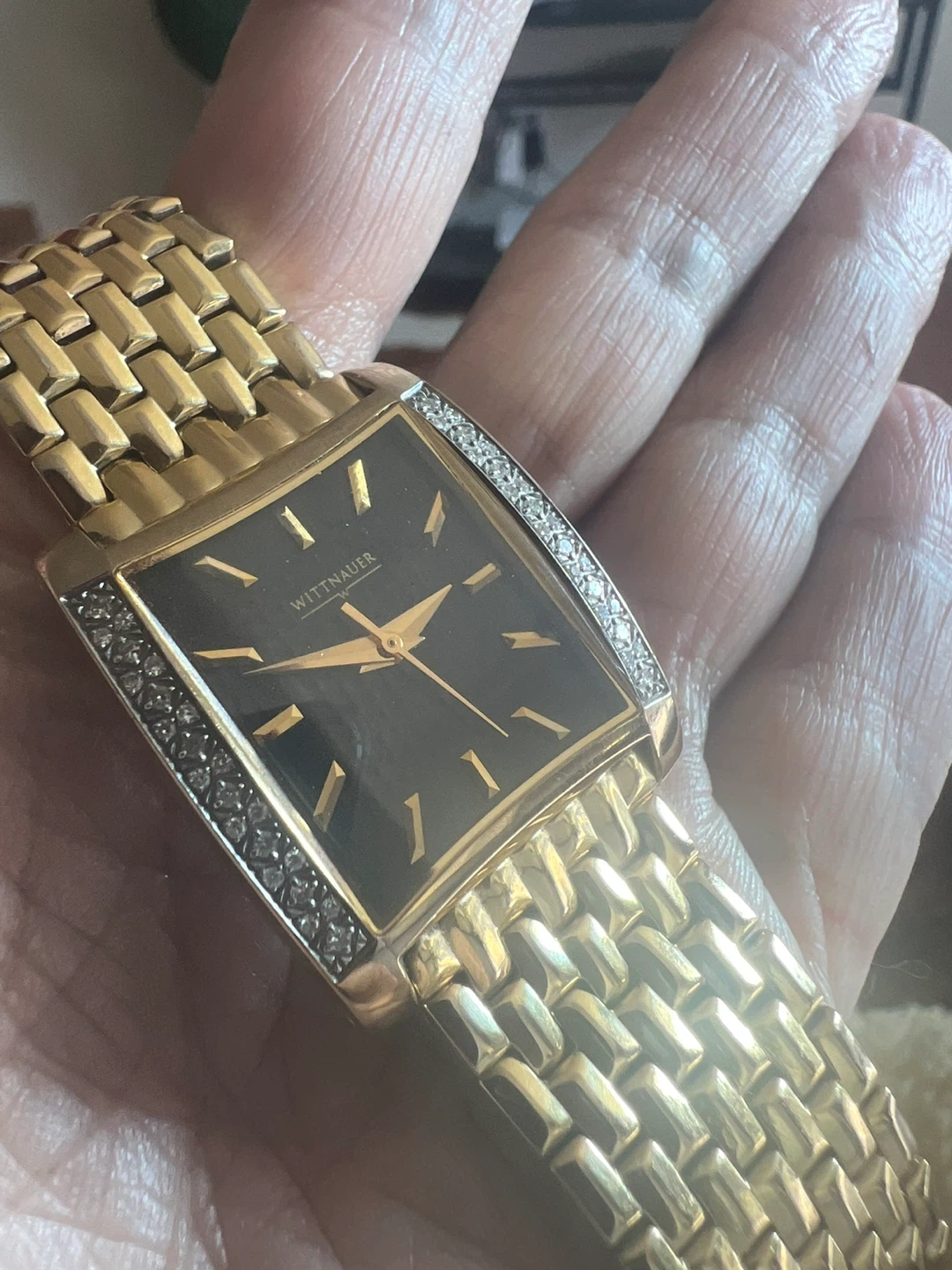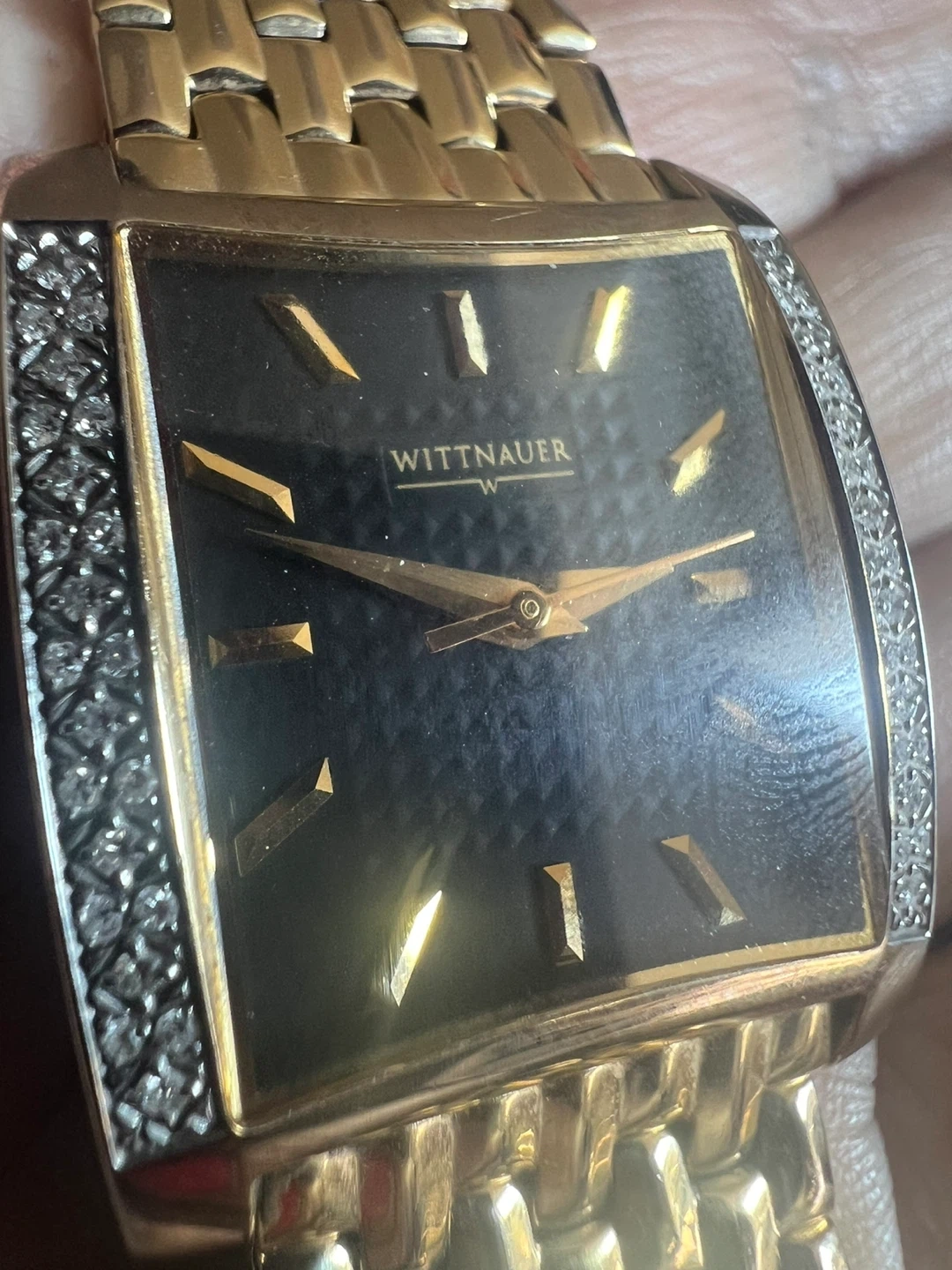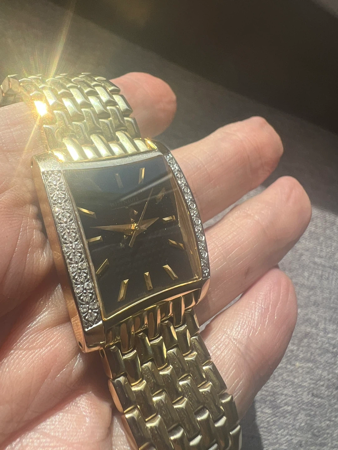 Selling a Wittnauer watch in gold with diamond accents. It's a beautiful timepiece that adds a touch of elegance to any outfit. Feel free to reach out if you're interested!