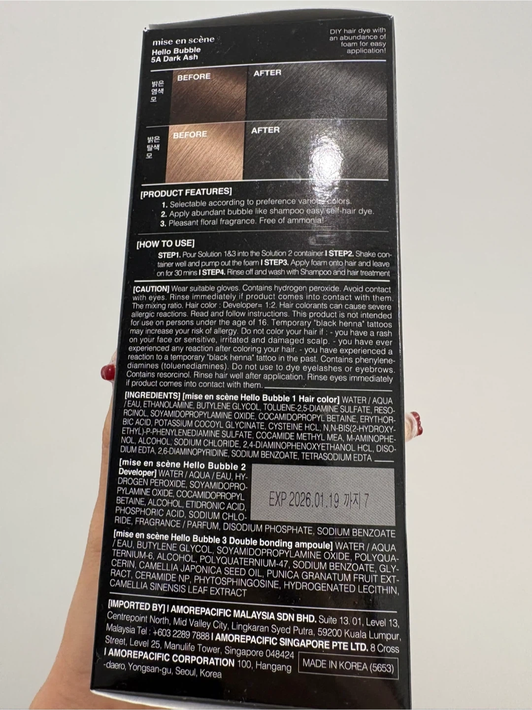 Selling a Mise en scène Hello Bubble hair dye in 5A Dark Ash. It's a DIY hair dye with an abundance of foam for easy application. The box includes everything you need to dye your hair at home. The expiry date is 2026 January 19, so you have plenty of time to use it! Its new! Cash and pickup only