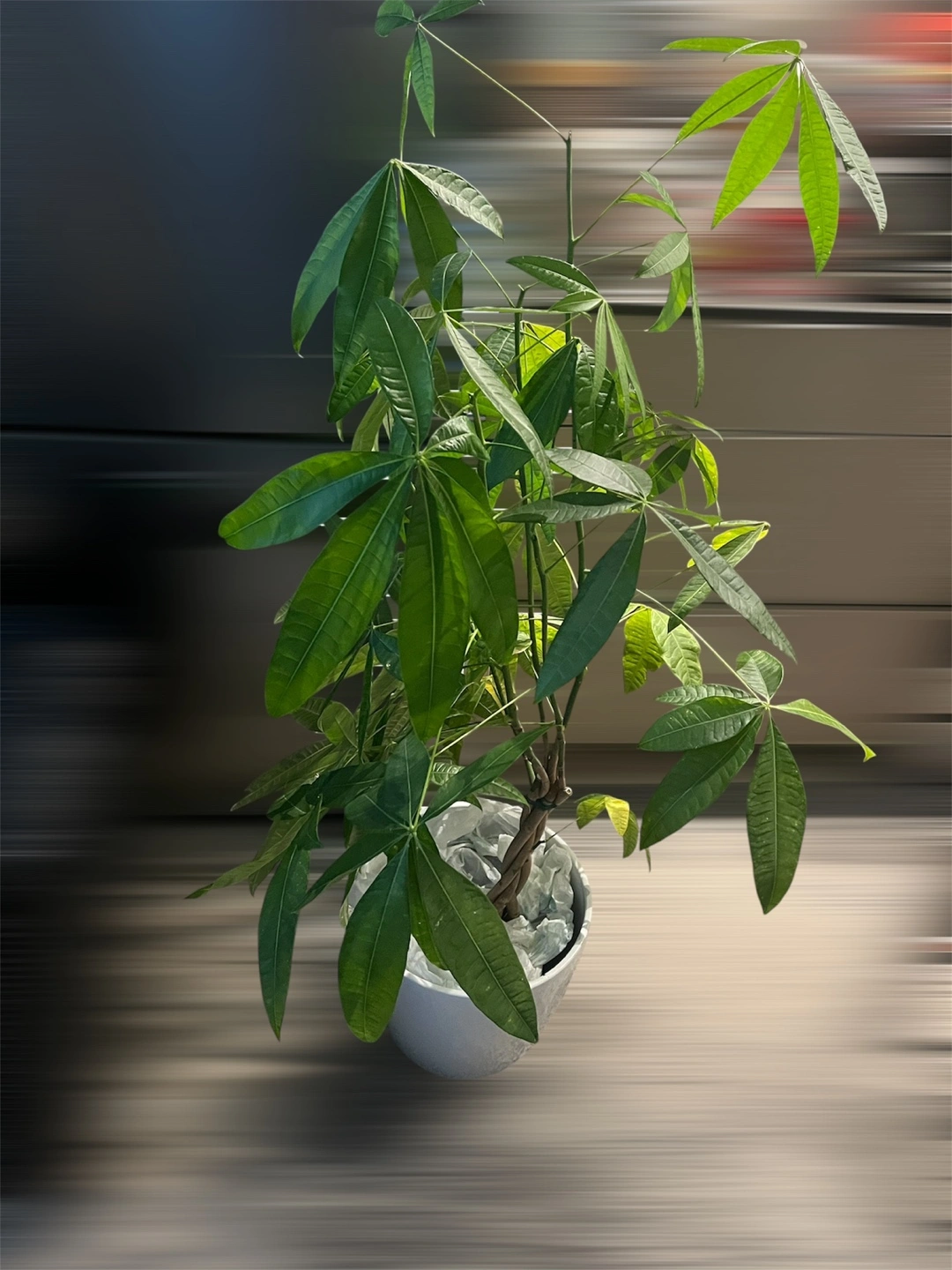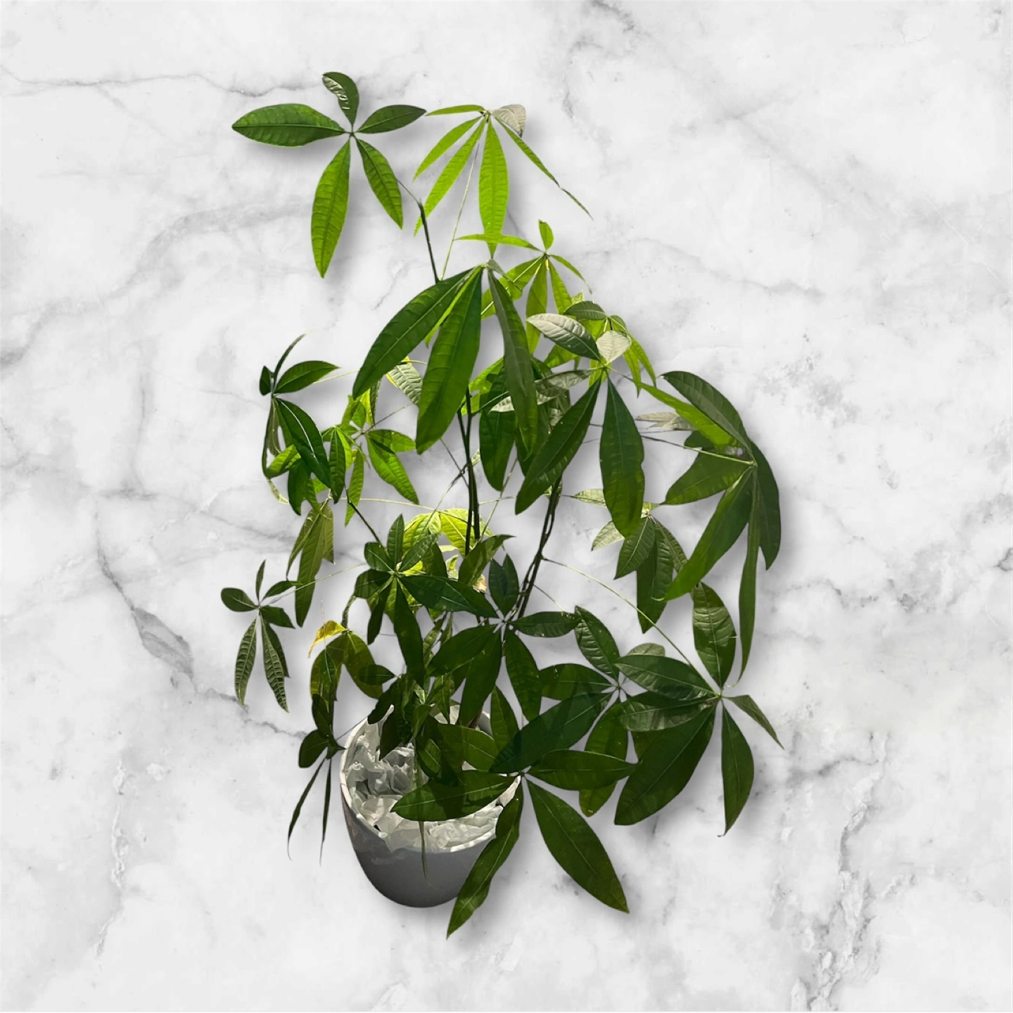 A lovely money tree potted in a simple white pot ready to bring some good luck to your home!