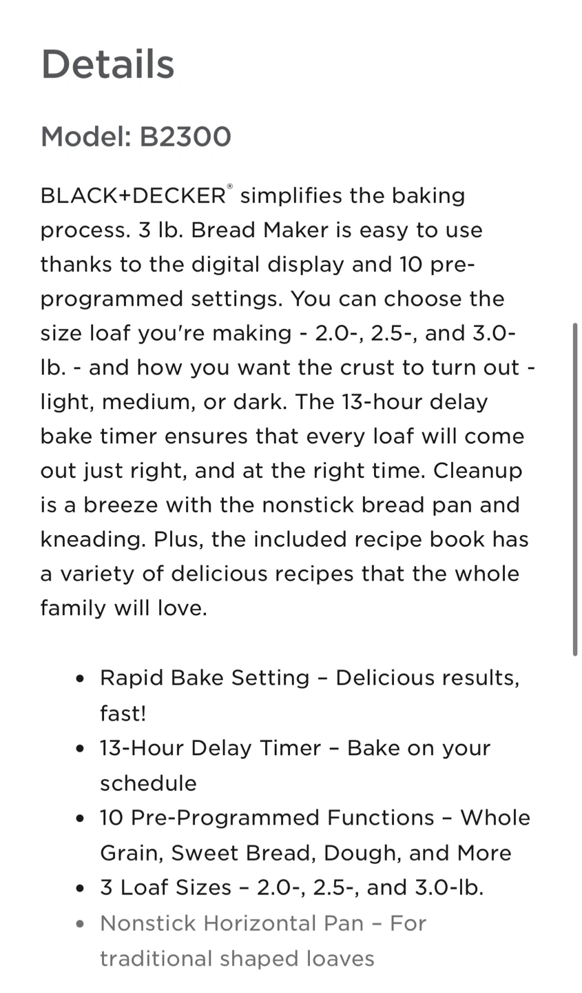 Selling a Black+Decker All-In-One Deluxe Automatic Breadmaker, model B2300. It's in excellent working condition and ready to make some delicious homemade bread! It includes the use and care manual with recipe guide Located in Osborne Village with easy accessible driveway for pickup . Selling a Black & Decker B2300 automatic bread maker . Used twice and in perfect working order. Makes loaves up to 3 lbs . Extra Large capacity. Can also Be used to make jams ! Bonus Easy to follow instructions for the beginner. Can set the timer for fresh bread in the morning. Accepting etransfer for guaranteed hold and cash transactions are FCFS. Please see my other listings as I am downsizing. Thanks