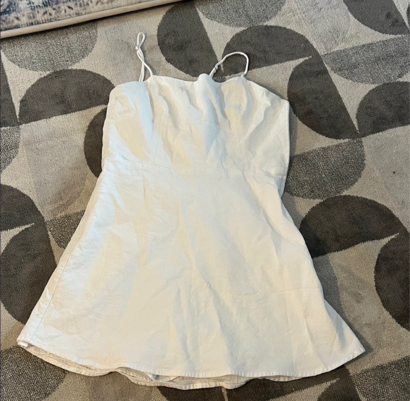 A cute white sundress perfect for summer days! It's in great condition and ready for a new home. The dress features thin straps and a comfortable fit for warm weather. It would be a great addition to your wardrobe!