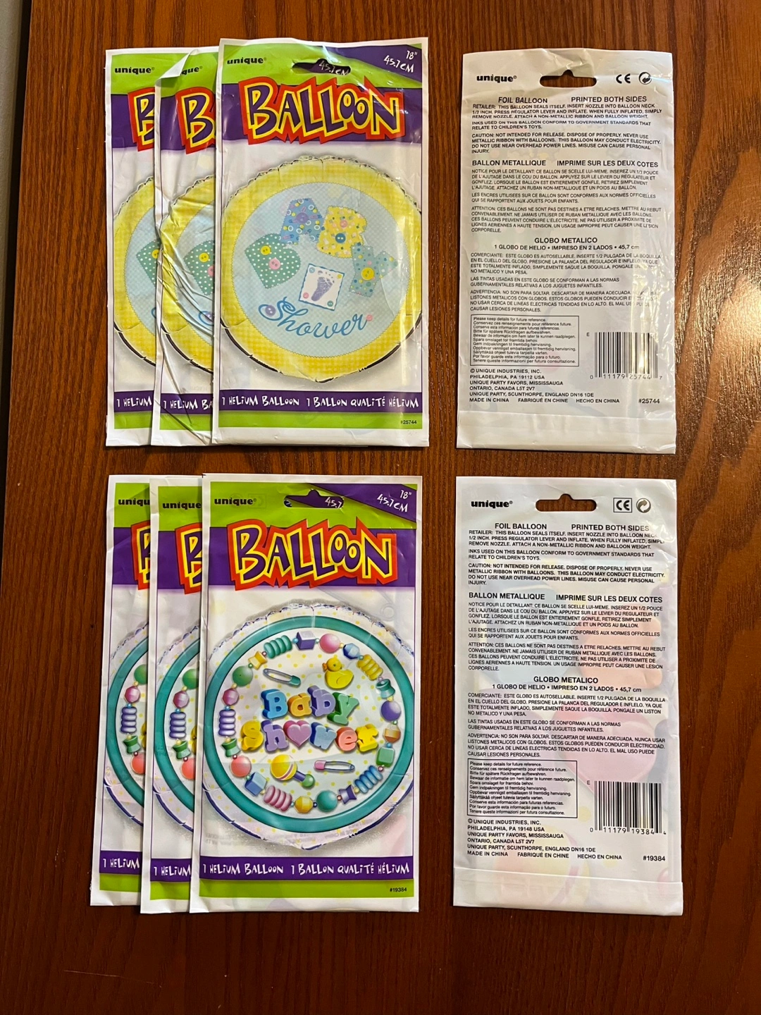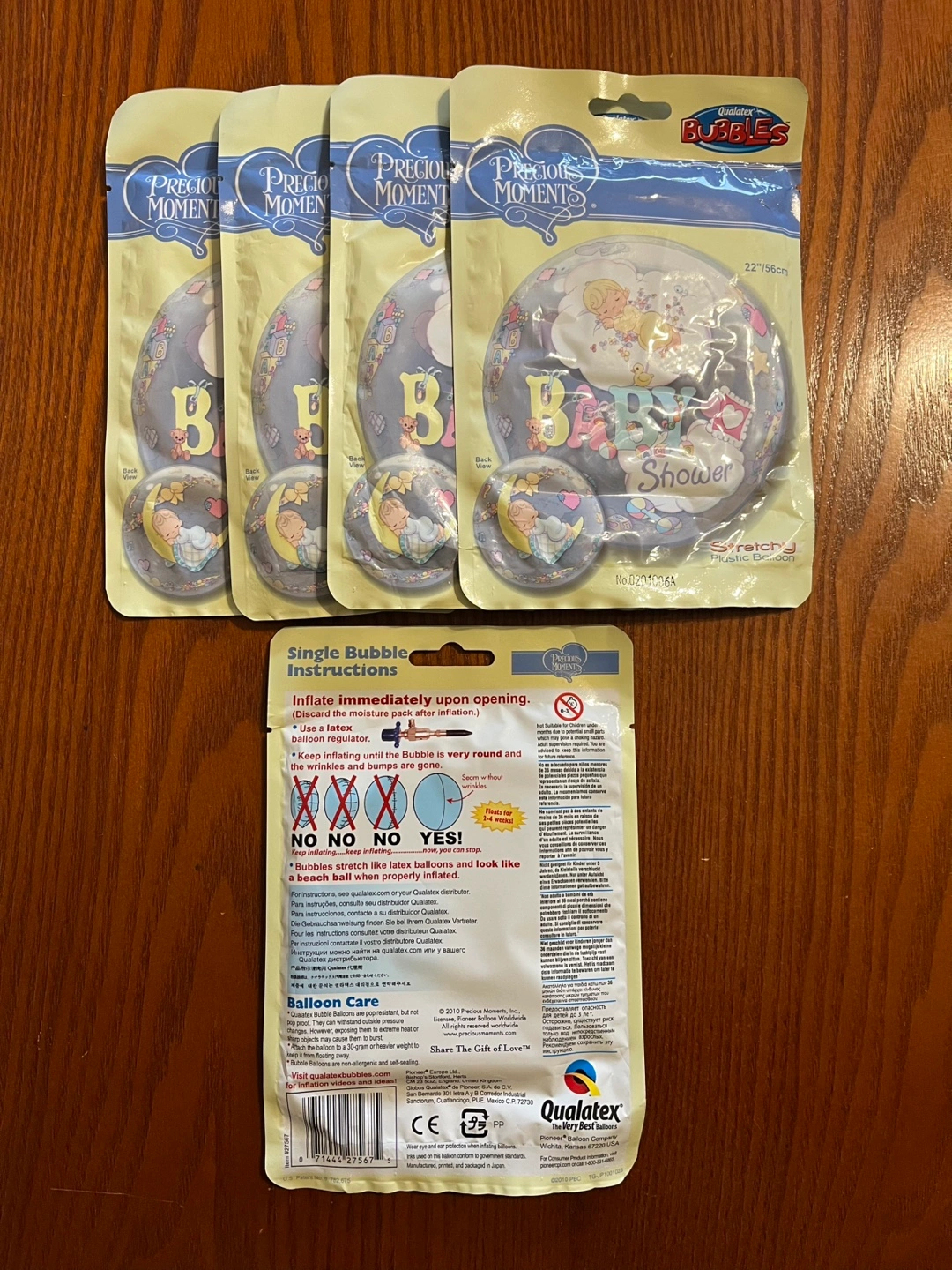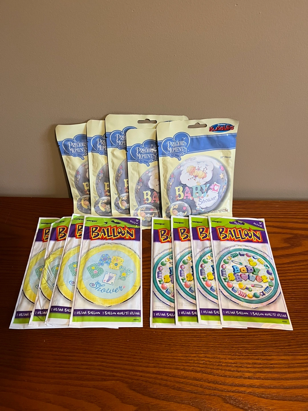 BNIP Assorted Baby shower balloons. 13 Balloons in total. 8-18” Baby shower foil balloons. 5-22” Baby shower Precious Moments stretchy bubble balloons. Information is shown in the pictures. Last picture is for price reference only. Selling all 13 together for $28. Cross posted.