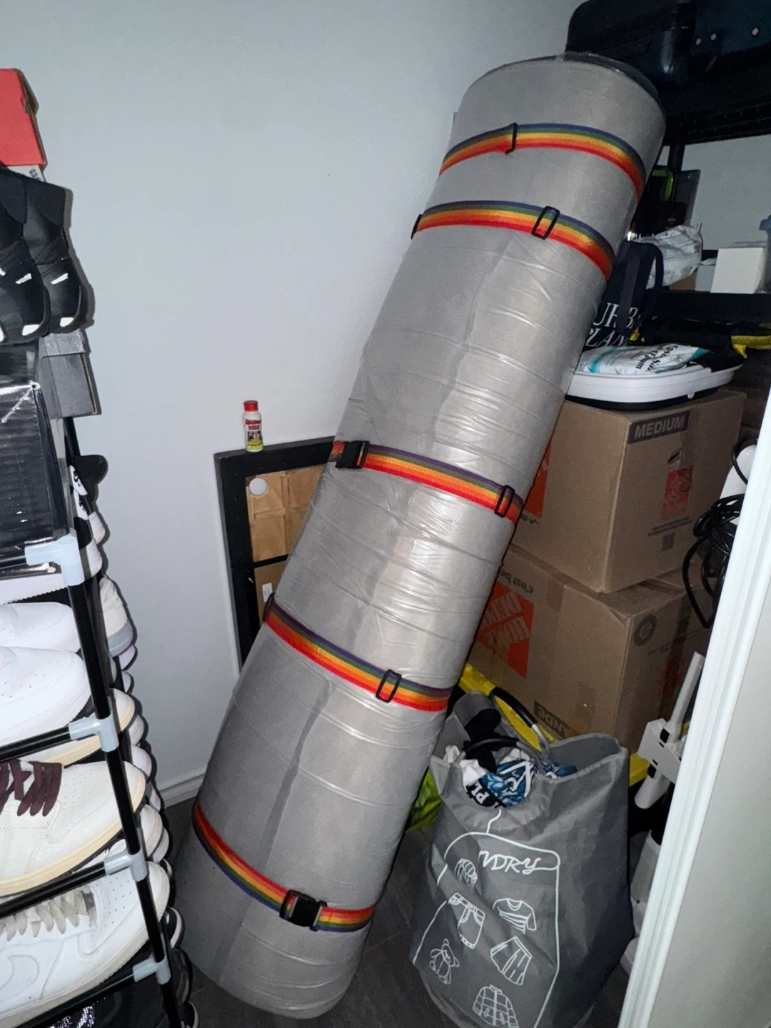 Queen Size Mattress, Super Firm Foam Mattress. First picture was from the seller in its original packaging and as of now, the mattress is Vaccum Sealed for better storage and moving, and to keep it clean as well. Only used for 3 months, superclean, with a very small spot from spilling coffee. No chances of bed bugs or any type of mites. Will be throwing in a new waterproof and bug proof Mattress cover with it for free. Bought for 500 dollars, very good quality mattress.