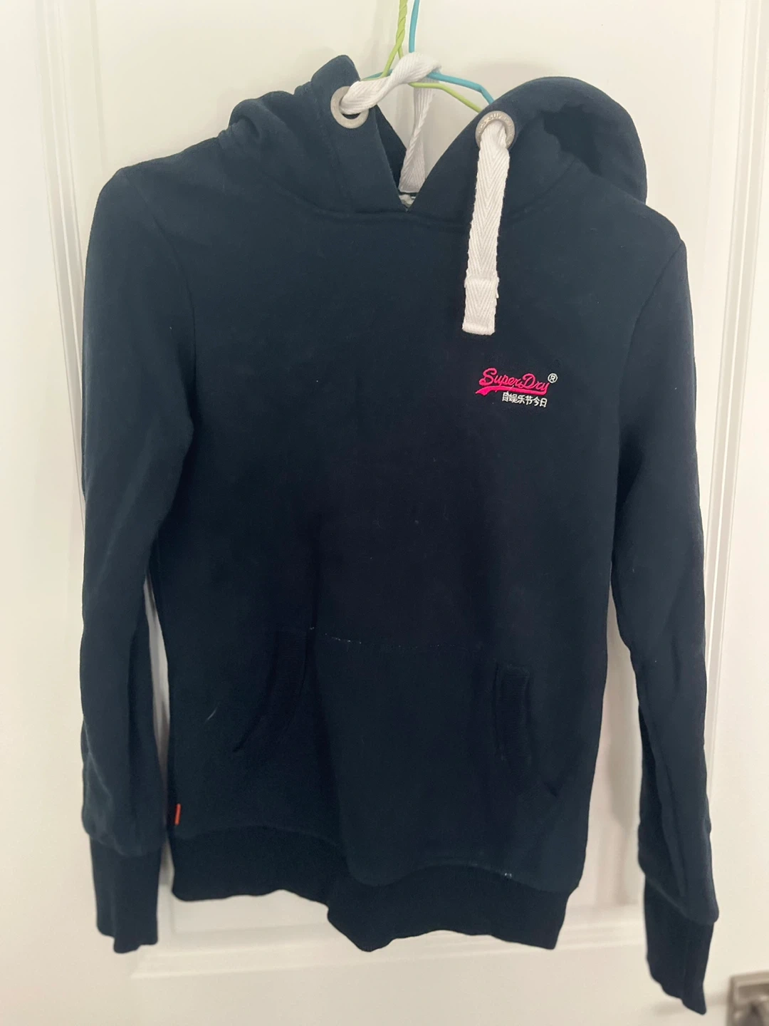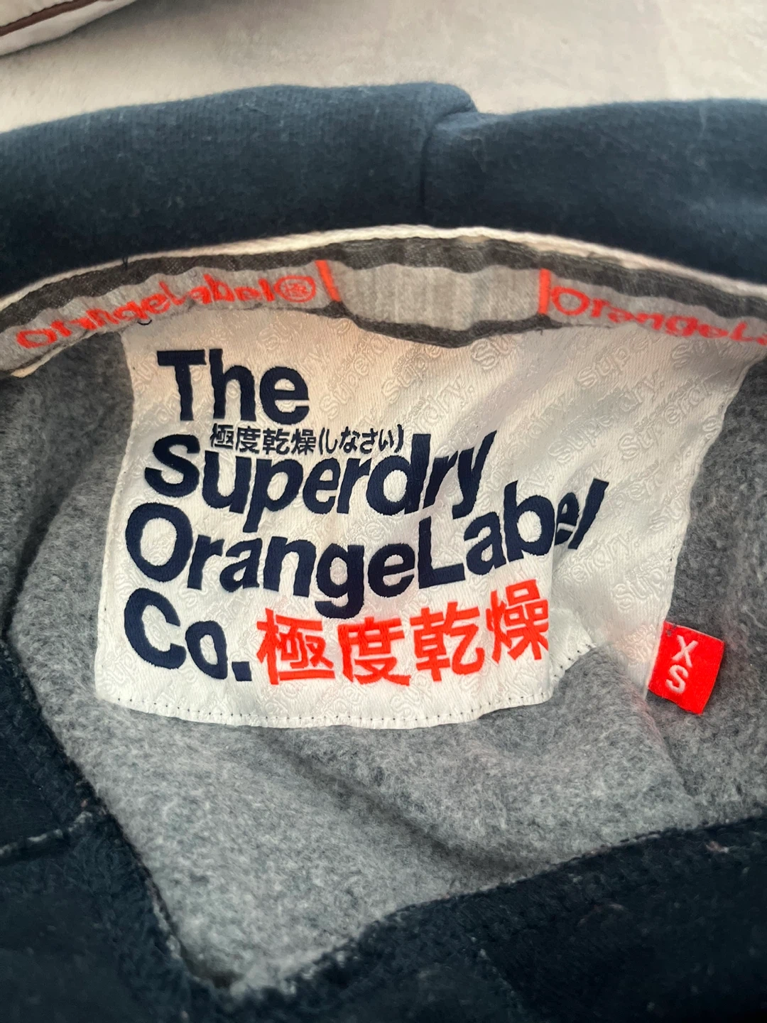 Cozy Superdry Orange Label hoodie in size XS. It's a stylish and comfortable piece for everyday wear! The hoodie features the classic Superdry logo and is in great condition