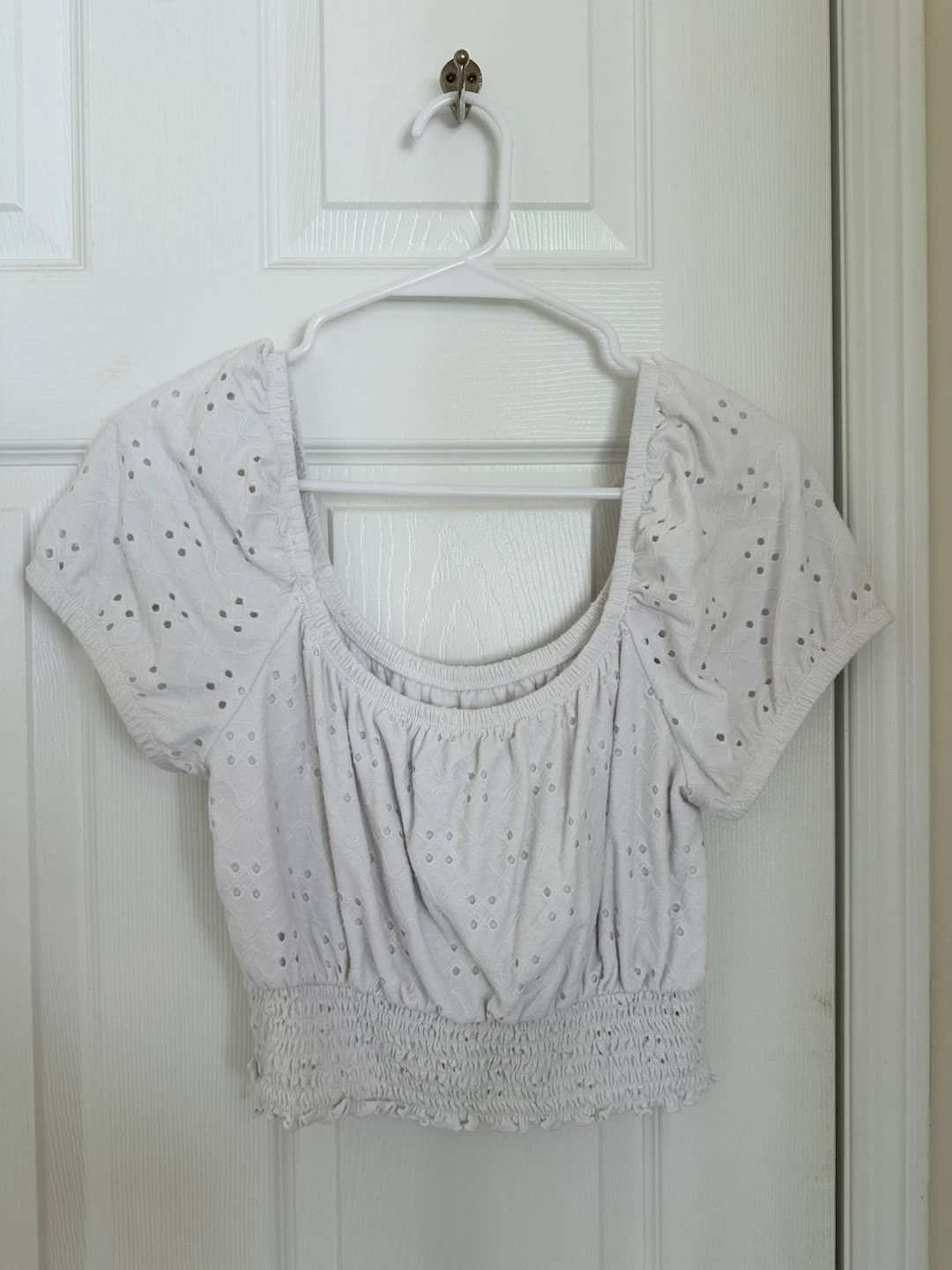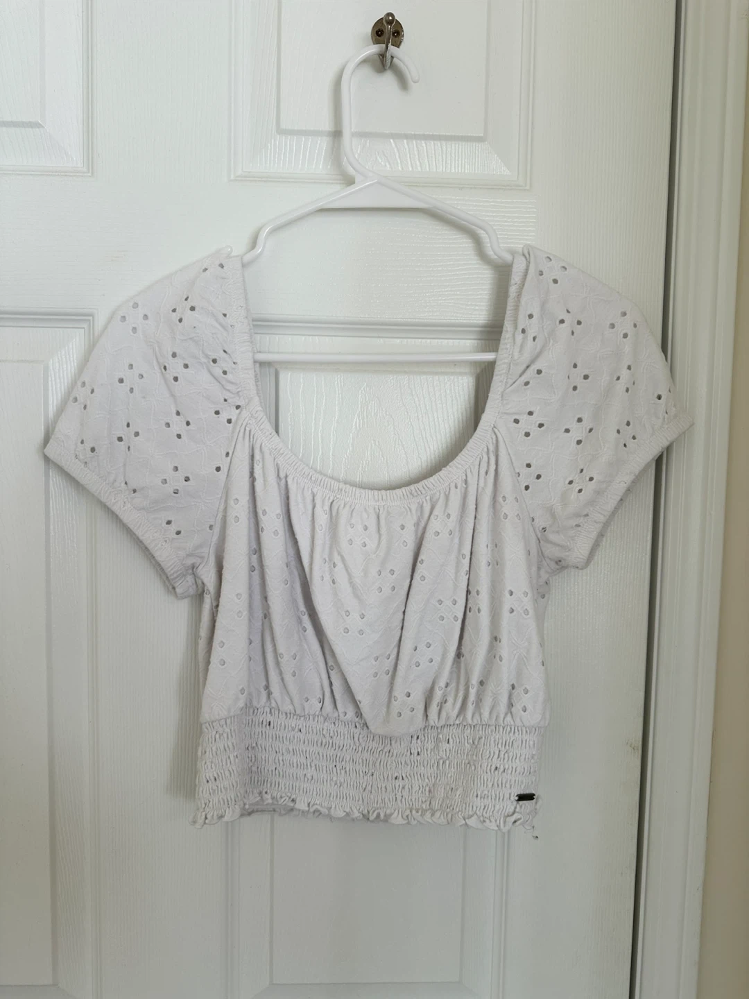 Selling a cute Hollister crop top! It's a white eyelet design and size medium. Comfy and stretchy.