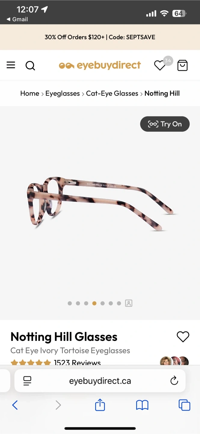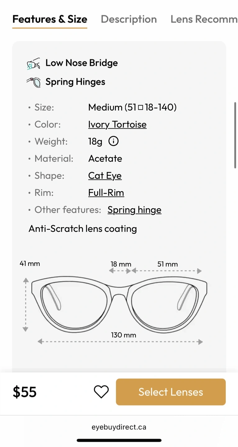 New reading glasses. Never worn — wrong shape for my face. Purchased from EyeBuyDirect. Prescription: OD 0.50 + OS 0.50 + Pupillary distance 60 Blue loght coating. Comes with new hardshell case, fabric protective bag, glasses wipe. Model: Notting Hill medium size ivory tortoise colour Here are some of the features: - Low nose bridge - Spring hinges - Acetate material - Anti-scratch lens coating Originally bought for $119.95
