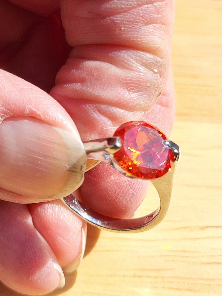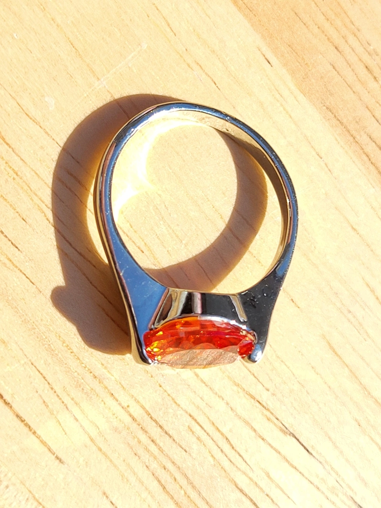 Selling a ring with a vibrant orange stone. It's in great condition and would make a lovely addition to any jewelry collection