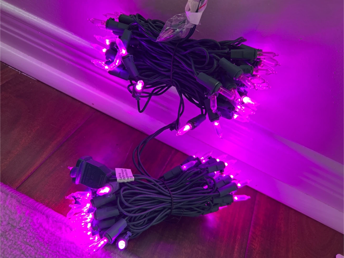 I'm selling a new set of SILVOM 100 LED mini pink lights! They are energy-saving and can connect up to 22 sets (2,200 lights). These lights are durable and have a long lifespan of 25,000 hours. Perfect for indoor and outdoor decor, and they are an eco-friendly light source