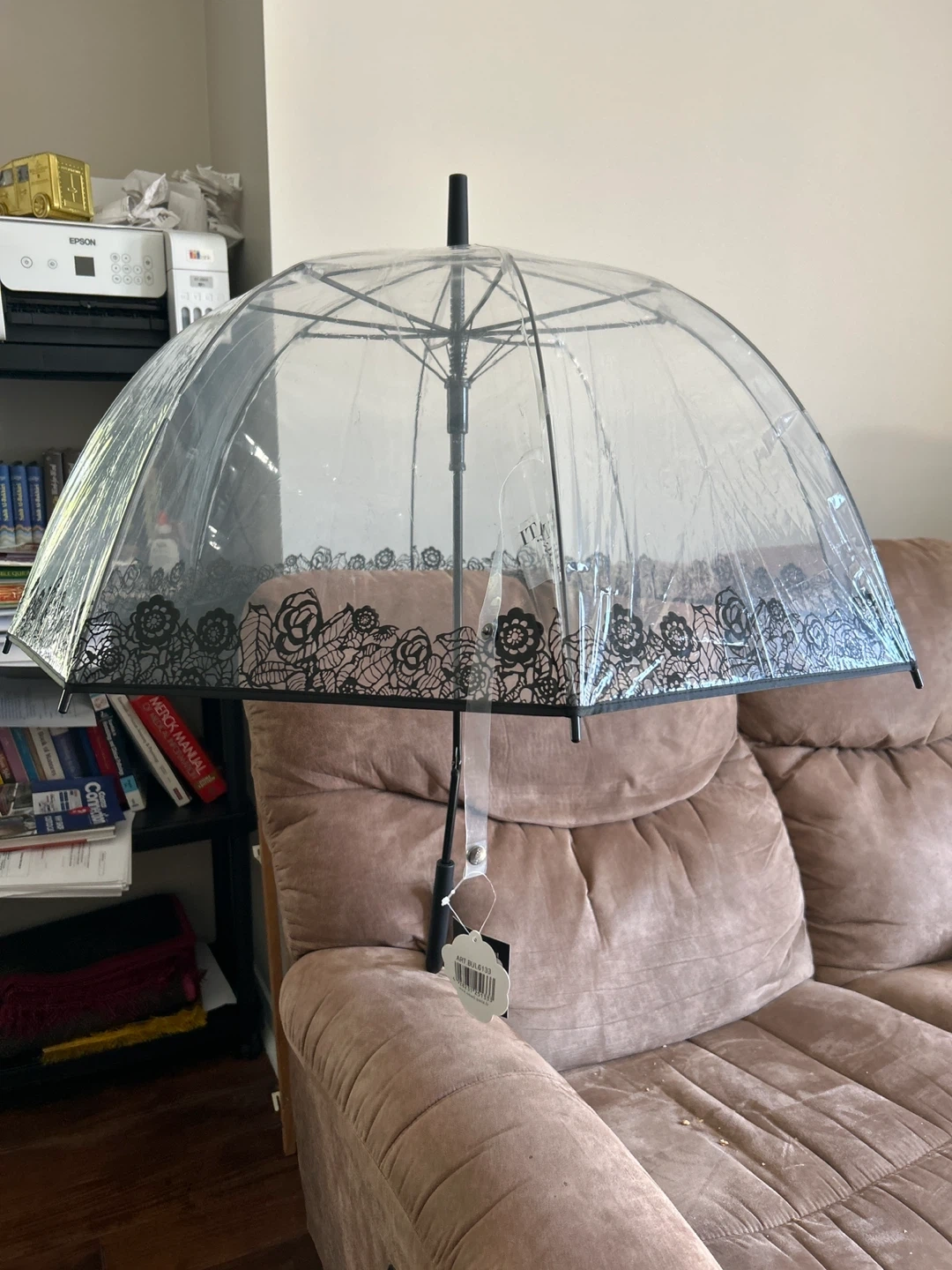 Selling a lovely clear umbrella, slightly bent as shown in the picture Works perfectly fine 5$