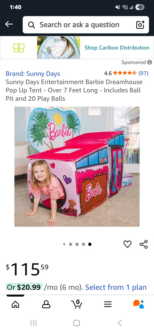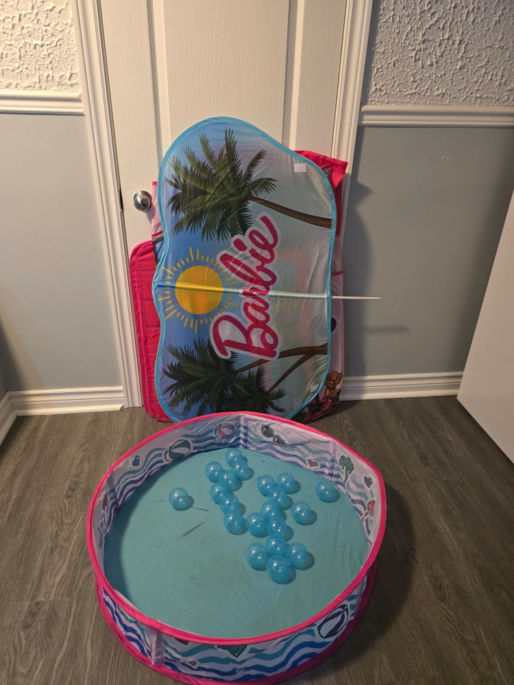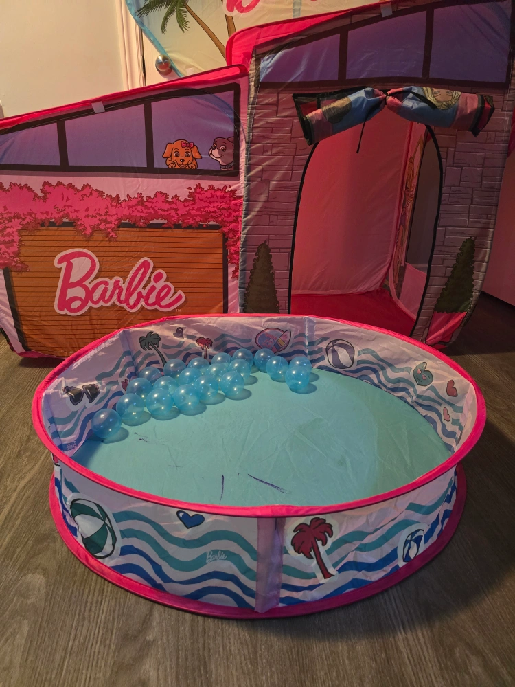 Pick up in North York Keele St and Wilson Ave area Gently used ▶️ Multi Family Account / Cash only AI: Selling a Sunny Days Entertainment Barbie Dreamhouse Pop Up Tent! It's over 7 feet long and includes a ball pit and play balls. Your little one will love this fun and colourful play tent!