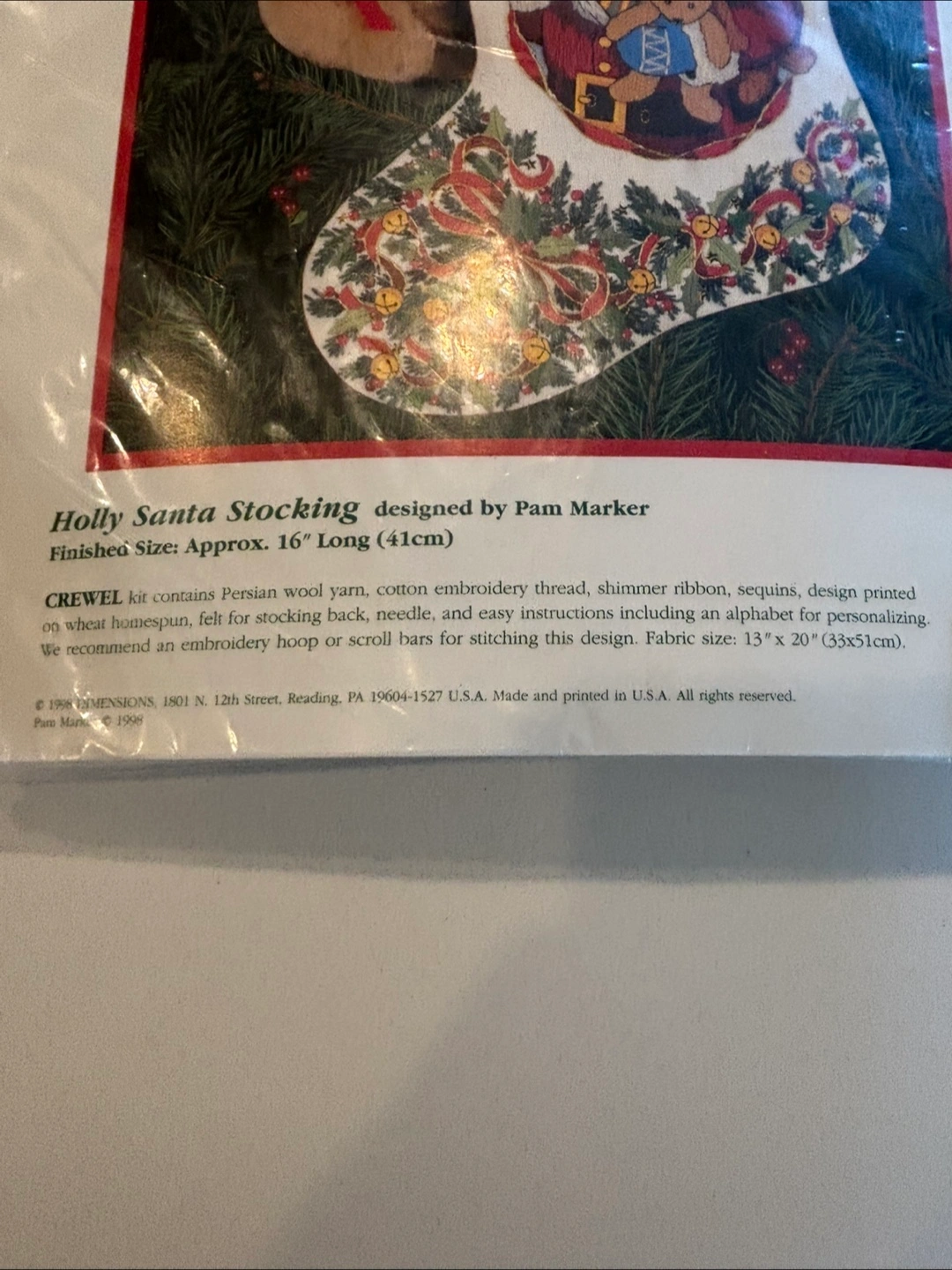 Brand New Dimensions 1998 Holy Santa Stocking Crewel Kit For Sale. Still in original packaging. Finished size: approximately 16” long. Great Christmas gift. East Regina pick up. Listed on other sites.