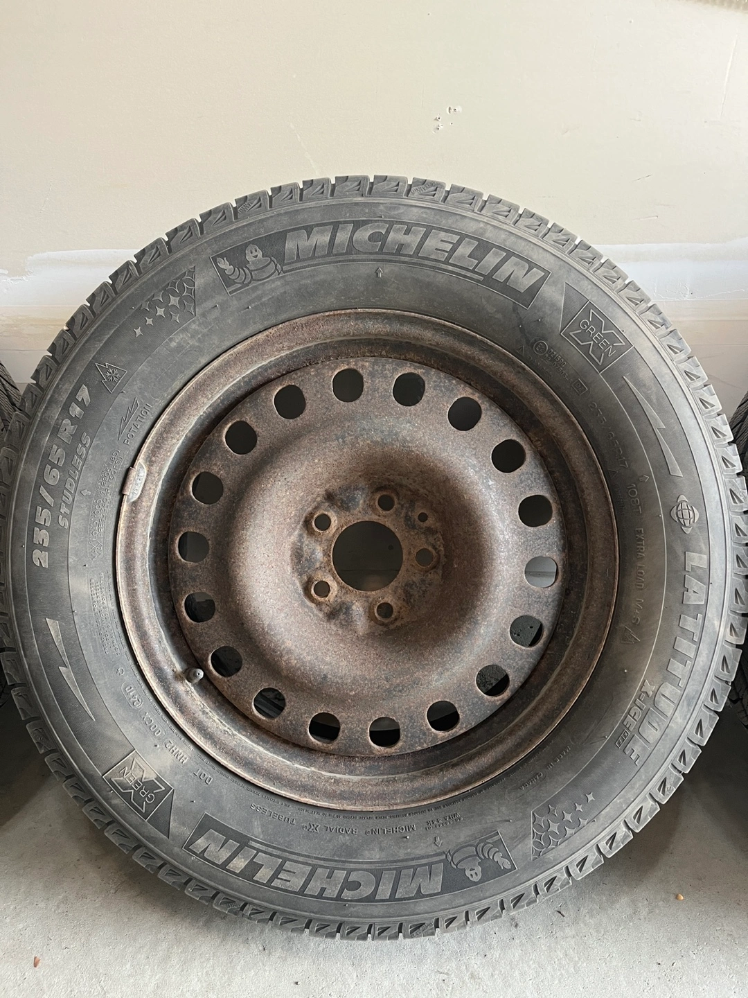 Selling a set of four Michelin Latitude winter tires. They are size 235/65R17 and are studless. Great for winter driving! It’s cheap. Come and get it. Everyone is selling for at least $400