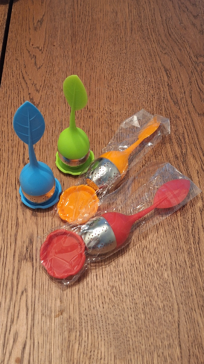 Brand new tea infusers with a cute leaf design! They come in a variety of colours, including red, orange, green, and blue. Perfect for brewing loose leaf tea