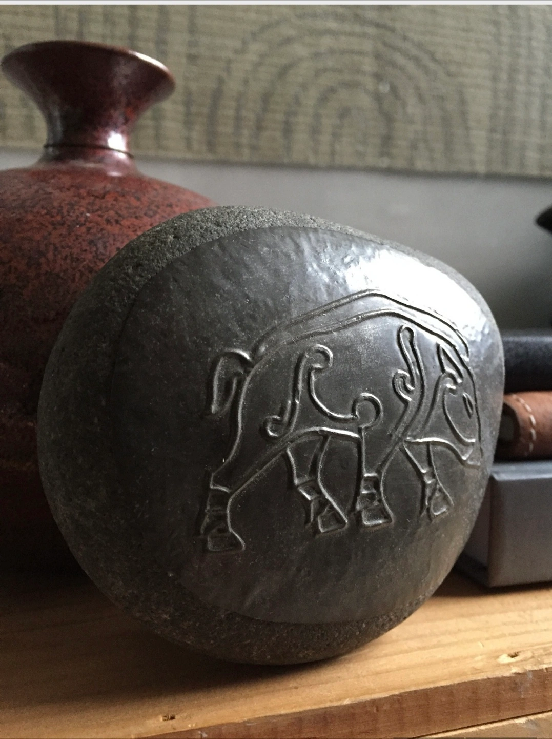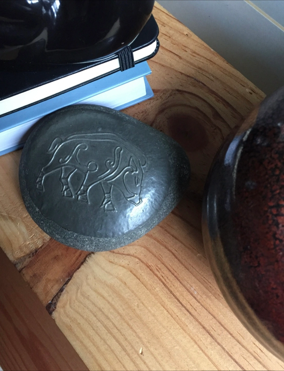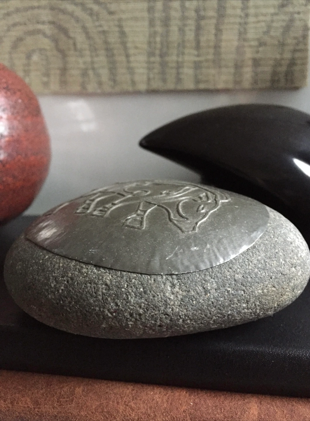 ➡️Cash & Pickup ONLY First come first serve A one-of-a-kind gray stone paperweight, adorned with a wild boar metal inlay. Its sleek, minimalist surface and handcrafted detail give it a calming, grounded presence. A striking blend of vintage craftsmanship and contemporary design, perfect for collectors. MEASUREMENTS ----------------------- LENGTH - 3.5 Inches WIDTH - 4.25 Inches