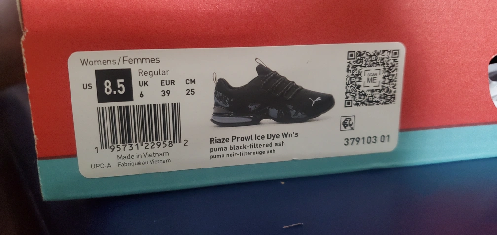 Selling a pair of Puma Riaze Prowl Ice Dye Wns in black, size 8.5 US. Brand new and they come in the original box.
