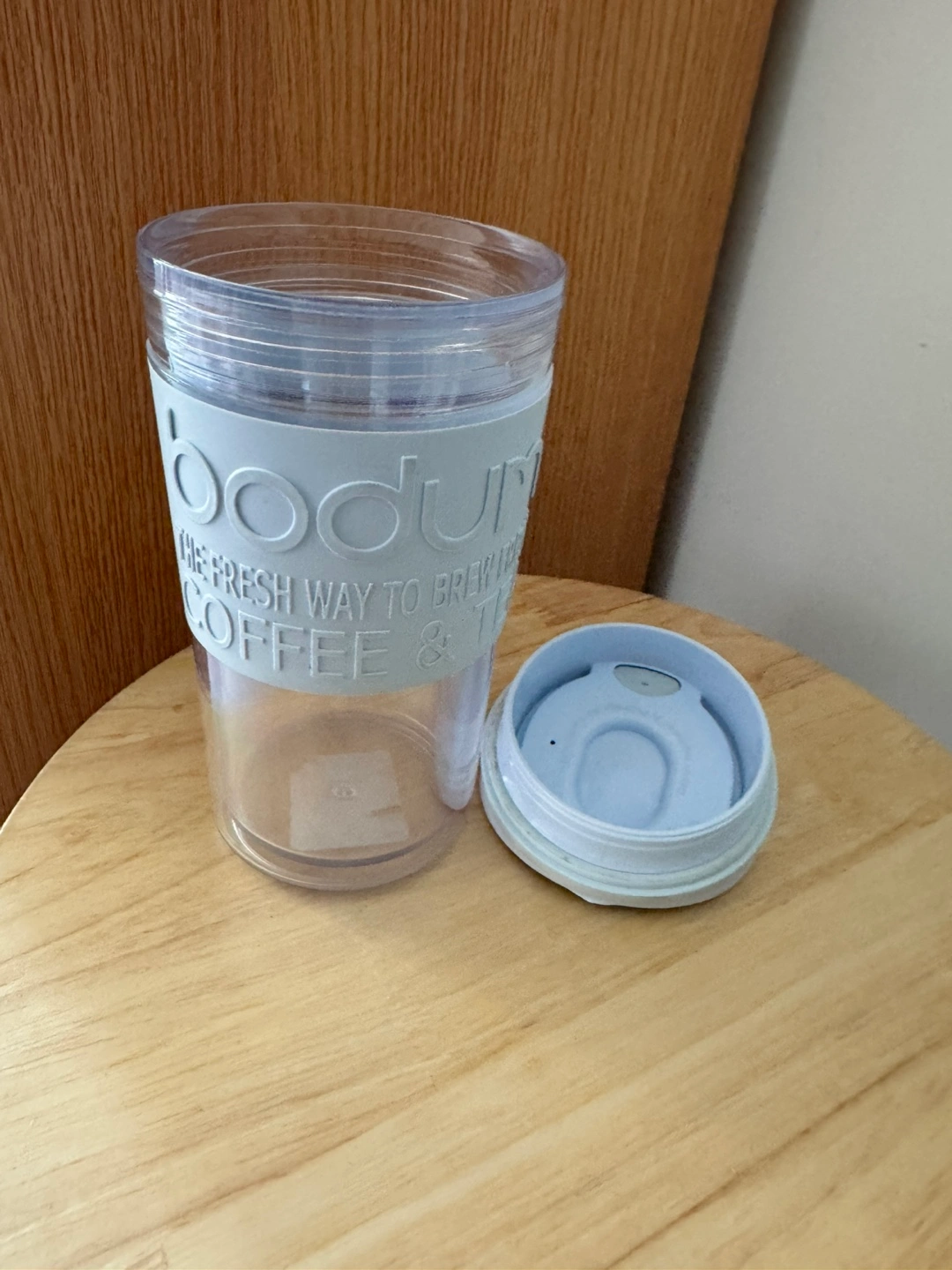 Bodum travel mug, perfect for keeping your coffee or tea hot on the go! The fresh way to brew coffee and tea. It's in great condition and ready for a new home