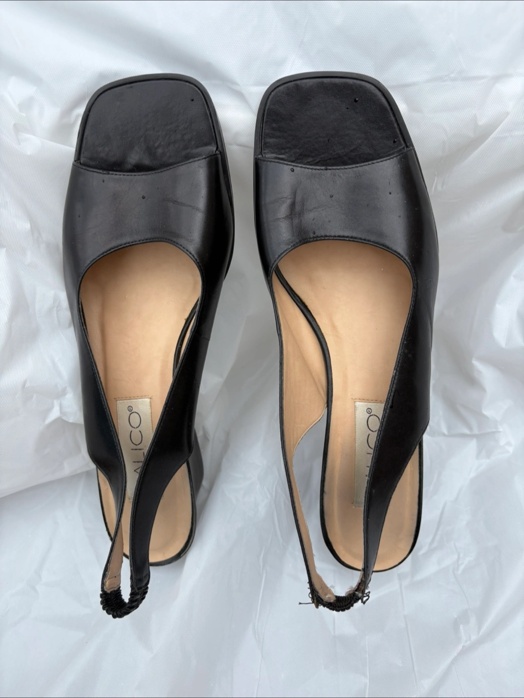 Selling a pair of classic Calico slingback heels in black leather. They are a size 10. These heels are in good condition and have lots of life left!