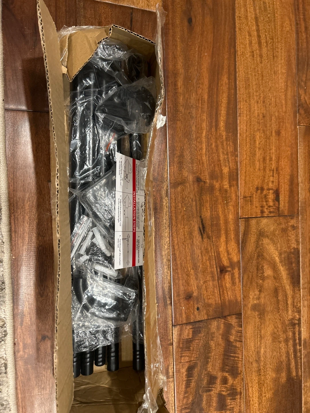 Selling a wrap-around curtain rod in black! It can extend from 28-48 inches. It's still in its original packaging and includes all the hardware you need for installation. Perfect for adding a touch of elegance to any room