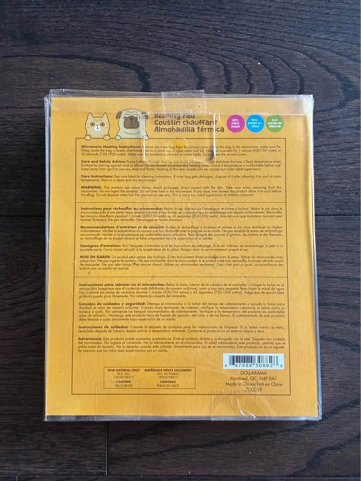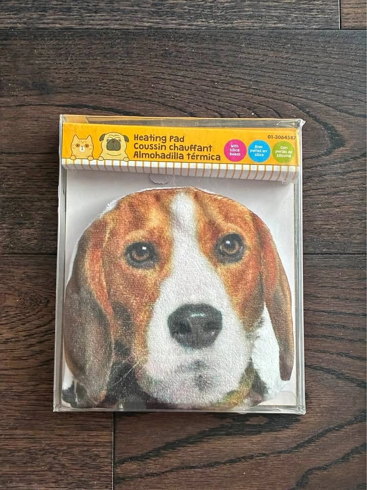 Heating pad - package has been opened, but item is unused - can be used as a heat compress - features image of a dog Cash only please. Bring exact amount.