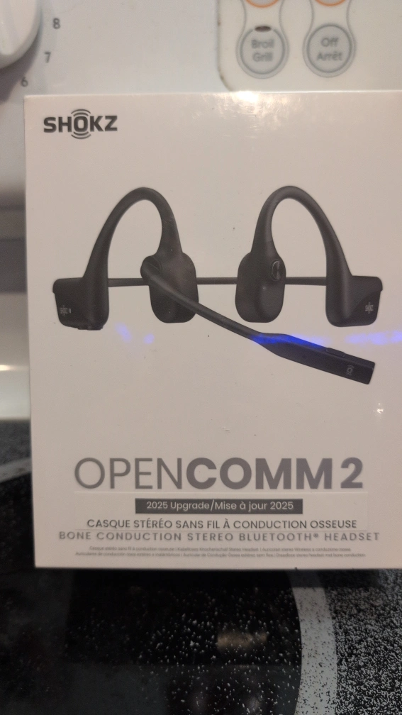 Selling a Shokz OpenComm2 bone conduction stereo Bluetooth headset in black! This headset is designed for all-day comfort and features an open-ear design. It also has a convenient mute button for easy control. It comes with a 2-year warranty. In original seal box.