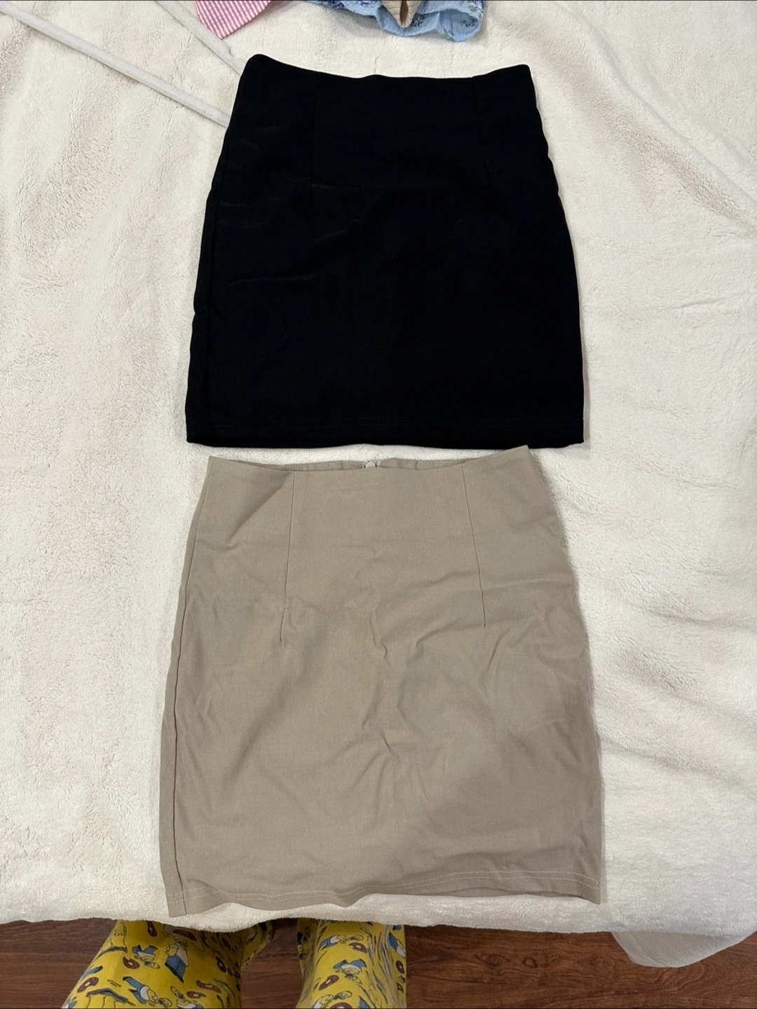 Selling two mini skirts! One is black and the other is a light beige colour Shorts built in under