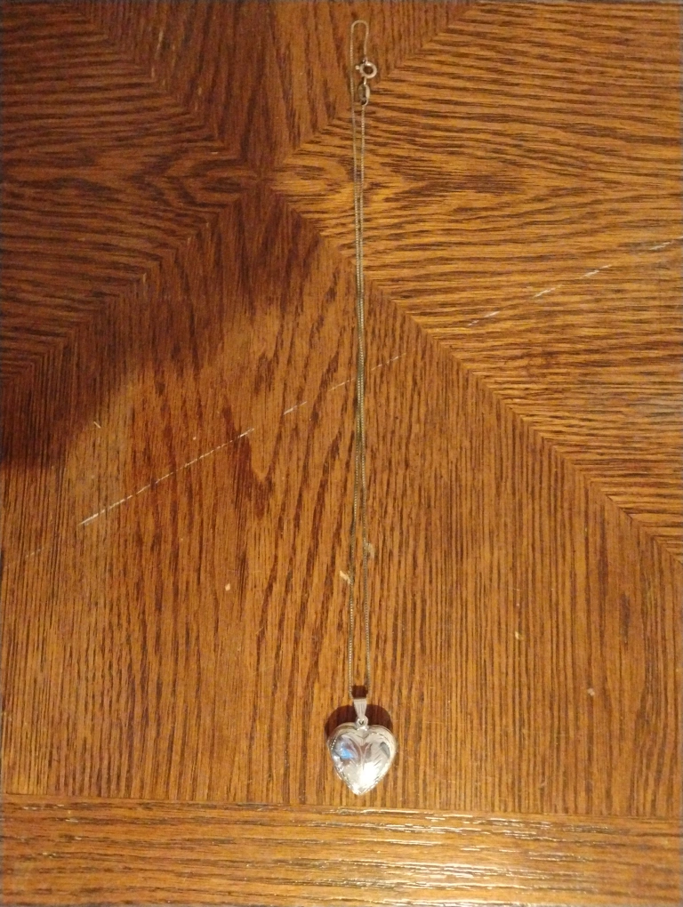 A sweet heart-shaped locket necklace! The inside is engraved with 'Baby' on one side and 'Sister' on the other. It's in great condition and ready for a new home