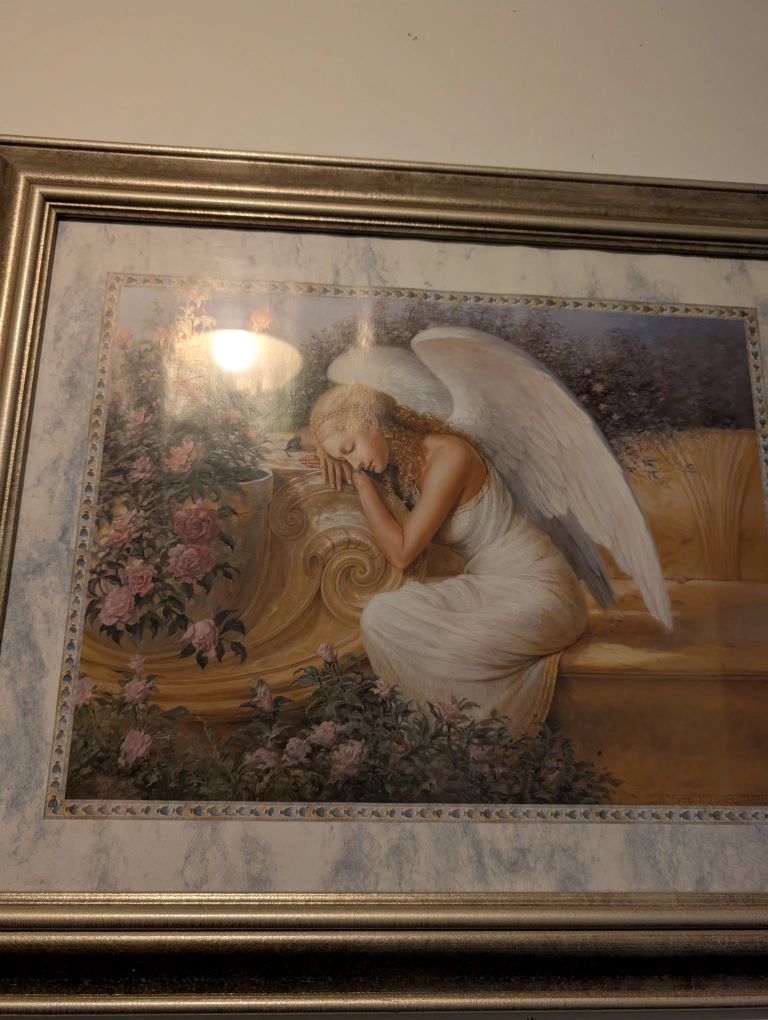 A beautiful framed angel painting, perfect for adding a touch of serenity to any room