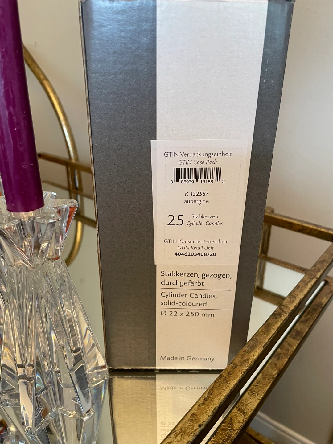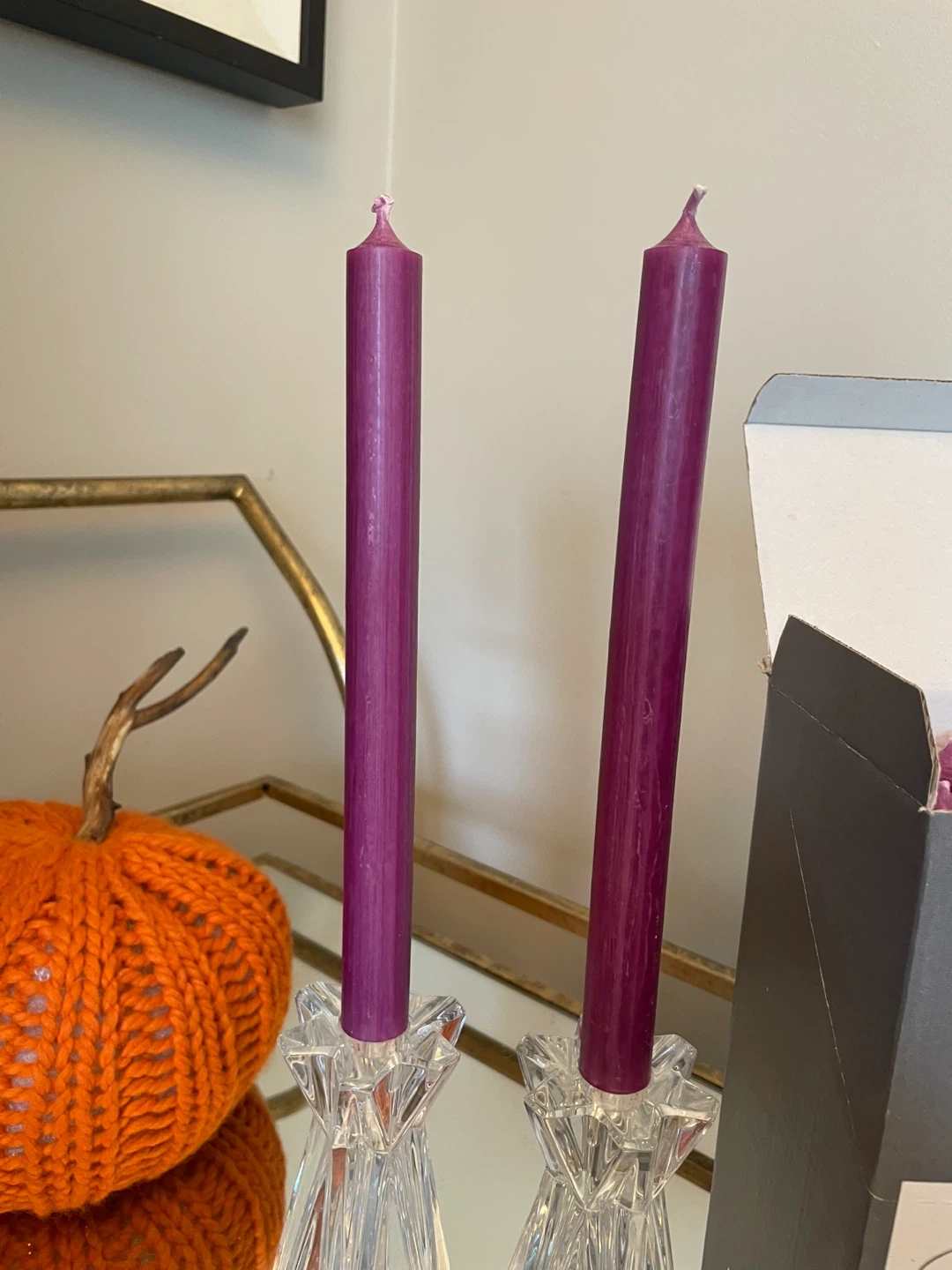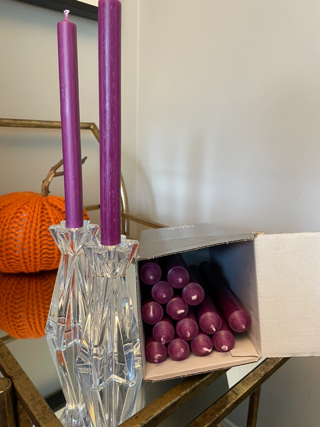 Selling a box of 16 aubergine cylinder candles! They are solid-coloured and measure 22 x 250 mm. These candles are brand NEW Non drip , excellent quality. Unscented . Solid colour throughout. Reg retail is 3.50 each plus tax . Does not include handle holders. All for the low bundle price of 16.00 These are definitely not your average dollarama candles . Accepting etransfer for fiat hold and FCFS for cash transactions. Please see my other listings for more as I am on a downsizing mission. Thank you
