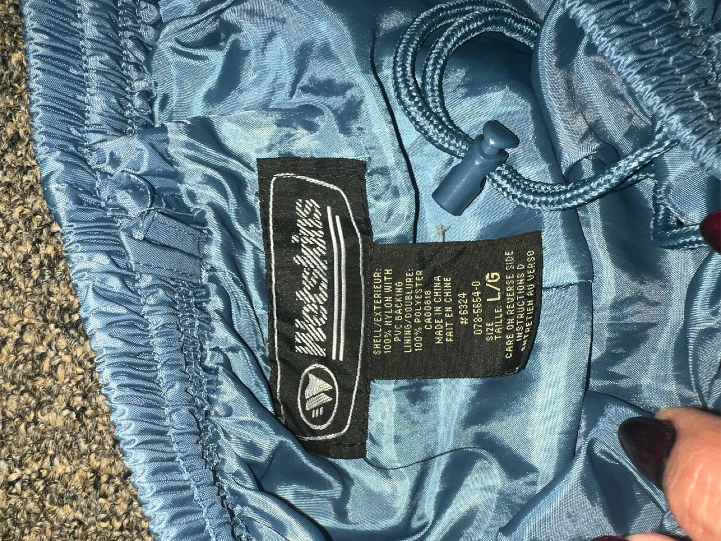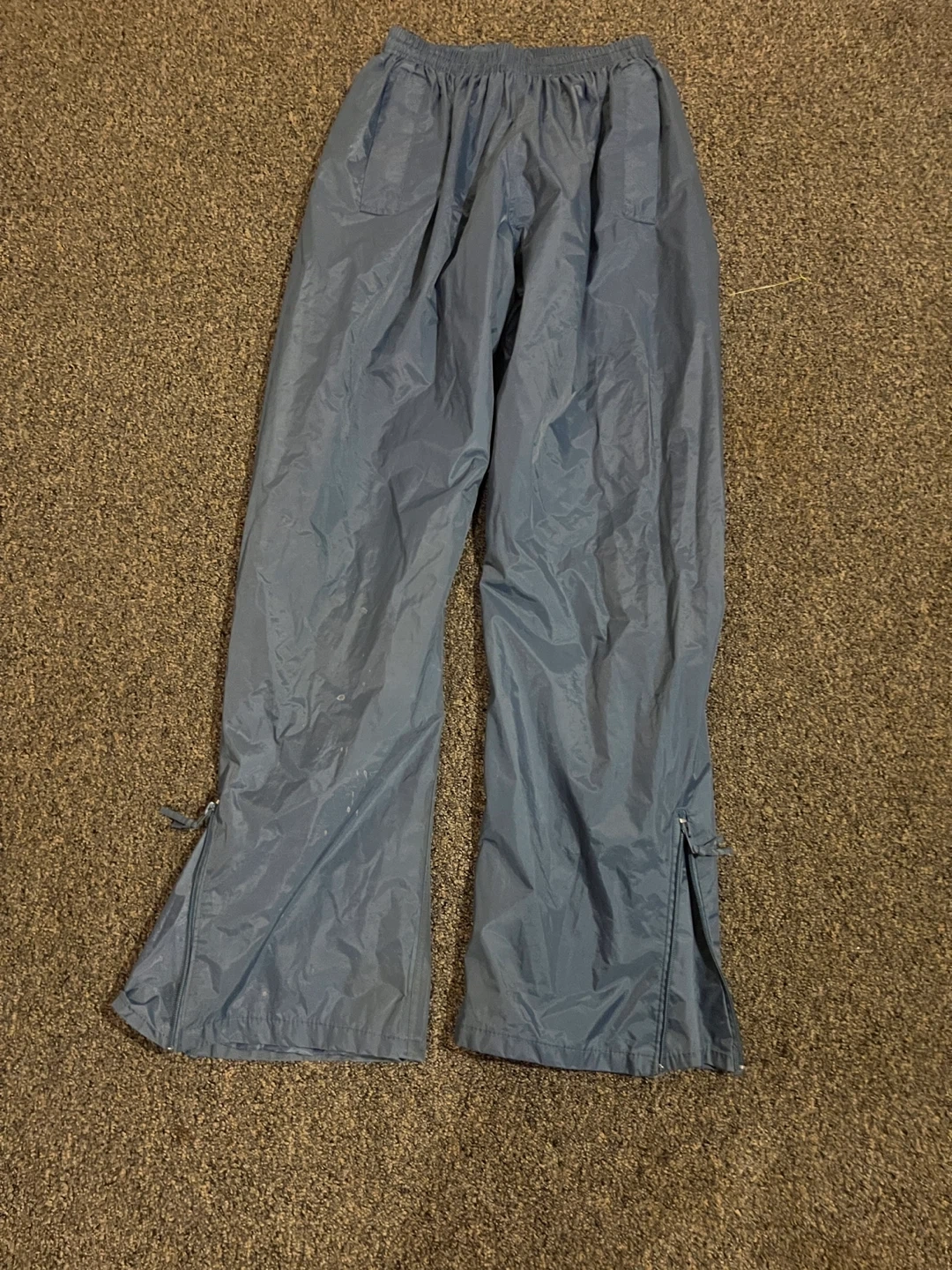 Selling a pair of Watkins track pants in size L. They're a nice blue colour and made of nylon. These pants feature zippers at the ankles. Perfect for a retro look!
