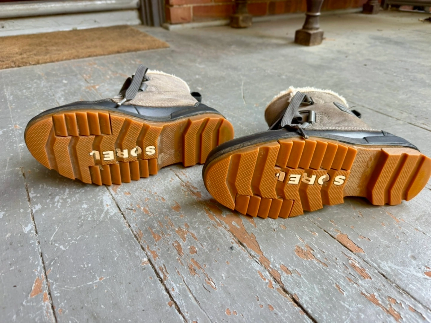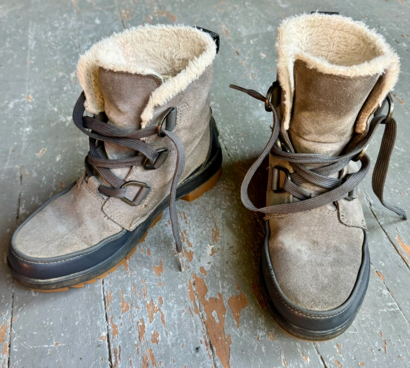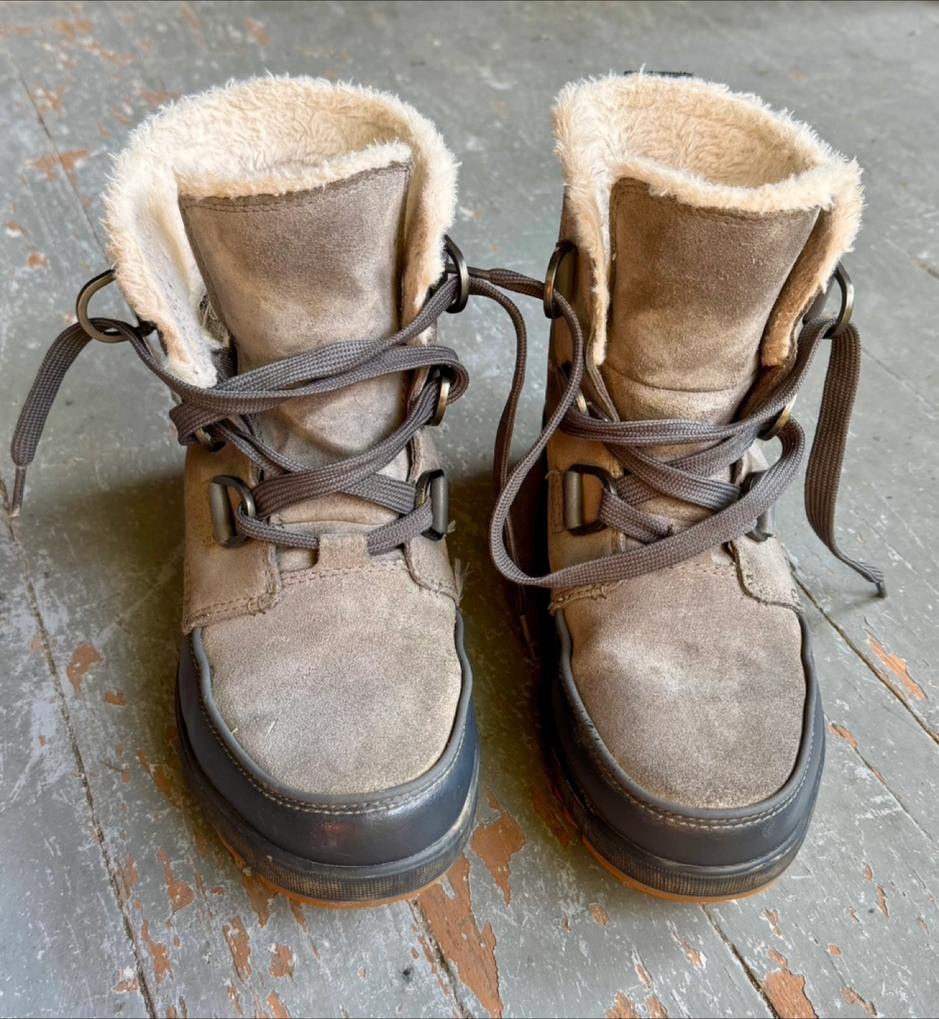 Gray Sorel winter boots in great condition! They are a women's size 8.5 and perfect for keeping your feet warm and dry during the cold weather. These boots have a stylish look and are ready for a new home