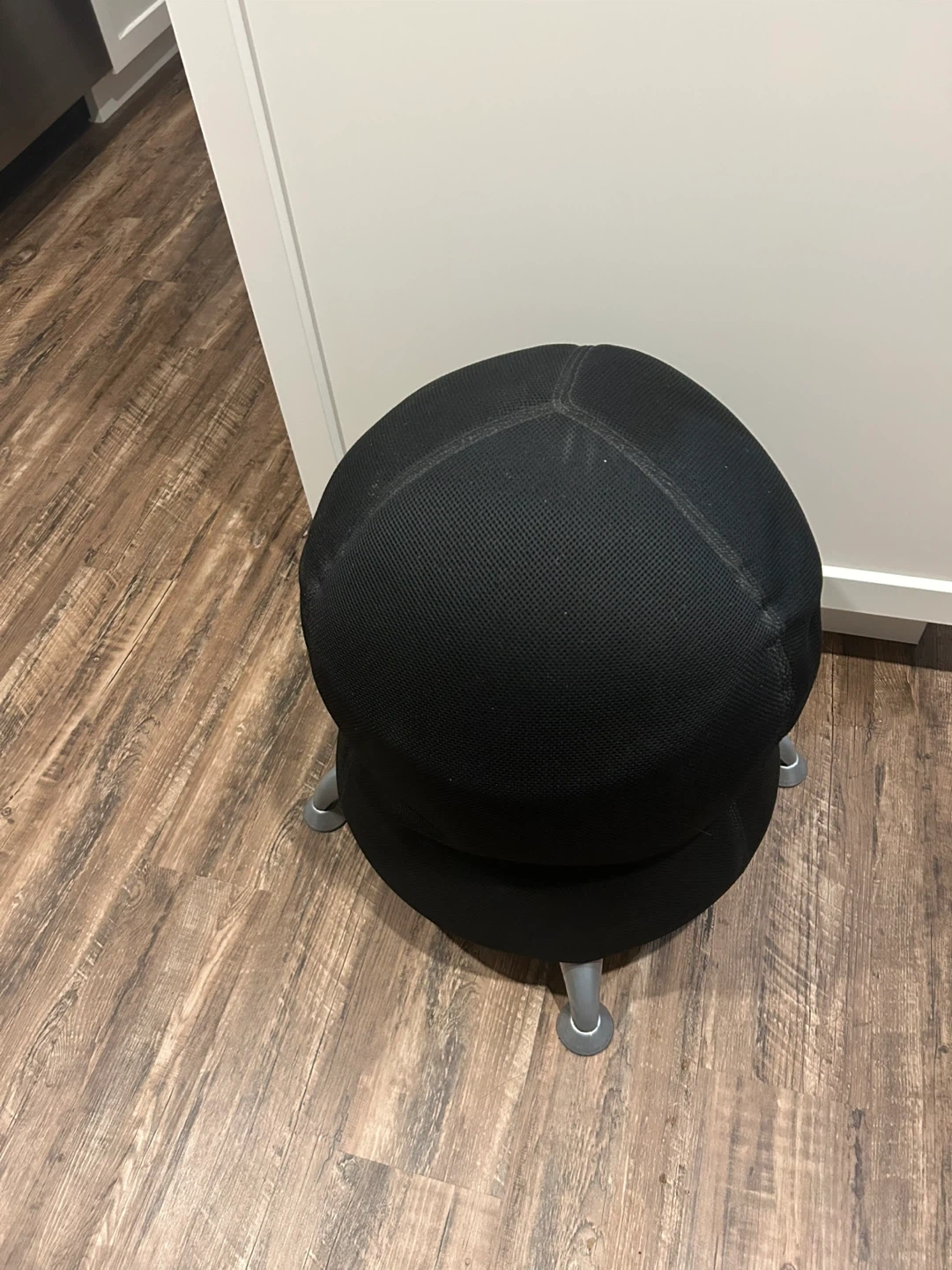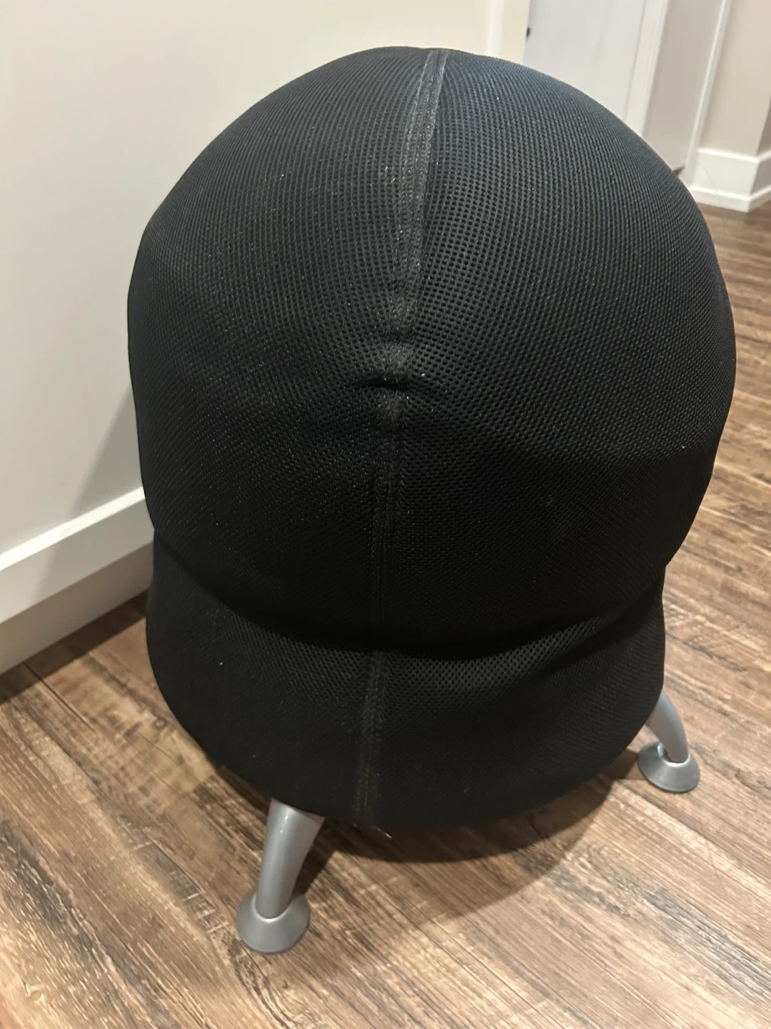 Selling a Gaiam balance ball chair in black! It's in great condition and perfect for improving your posture while you work from home. It features a mesh cover and silver legs. This chair is designed to help engage your core and promote better balance. It's a great alternative to a regular office chair! Needs some air for the ball.