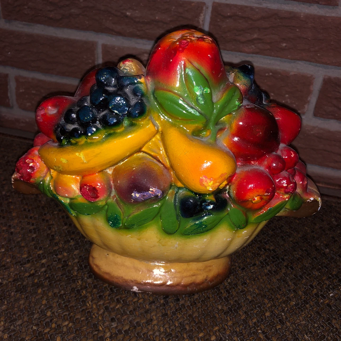 Selling two vintage chalkware fruit basket decorations - 1940’s 1950’s carnival prizes! Each is a colourful piece that would look great in any room! Asking $45 each or take both for $75!