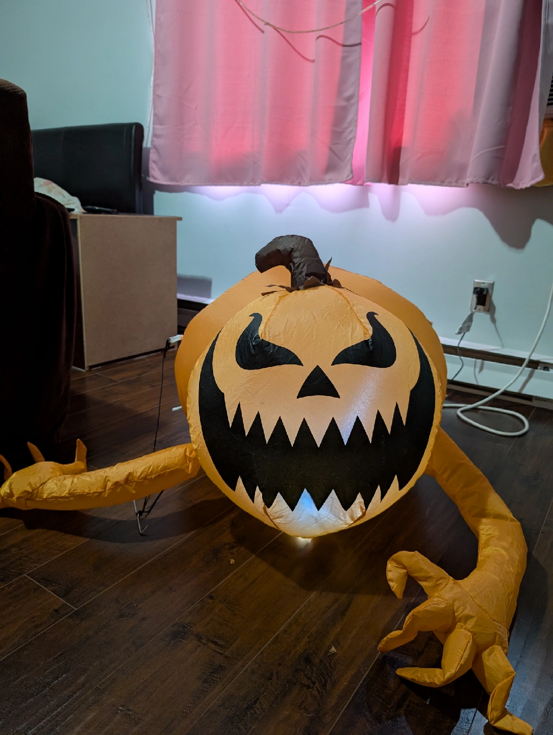 Get ready for Halloween with this fun inflatable pumpkin decoration! It's perfect for adding a spooky touch to your yard or home. Easy to set up and sure to be a hit with trick-or-treaters