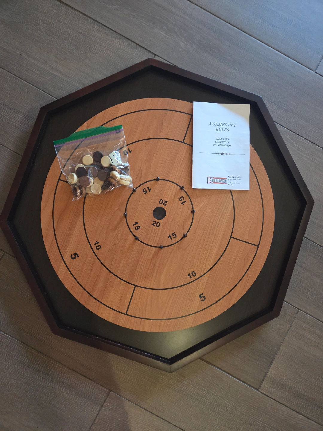 One left! It has 29 pieces (out of the 30 that are meant to be there). Two dice. Used for one event. Pick up only at Richmond/Bathurst.