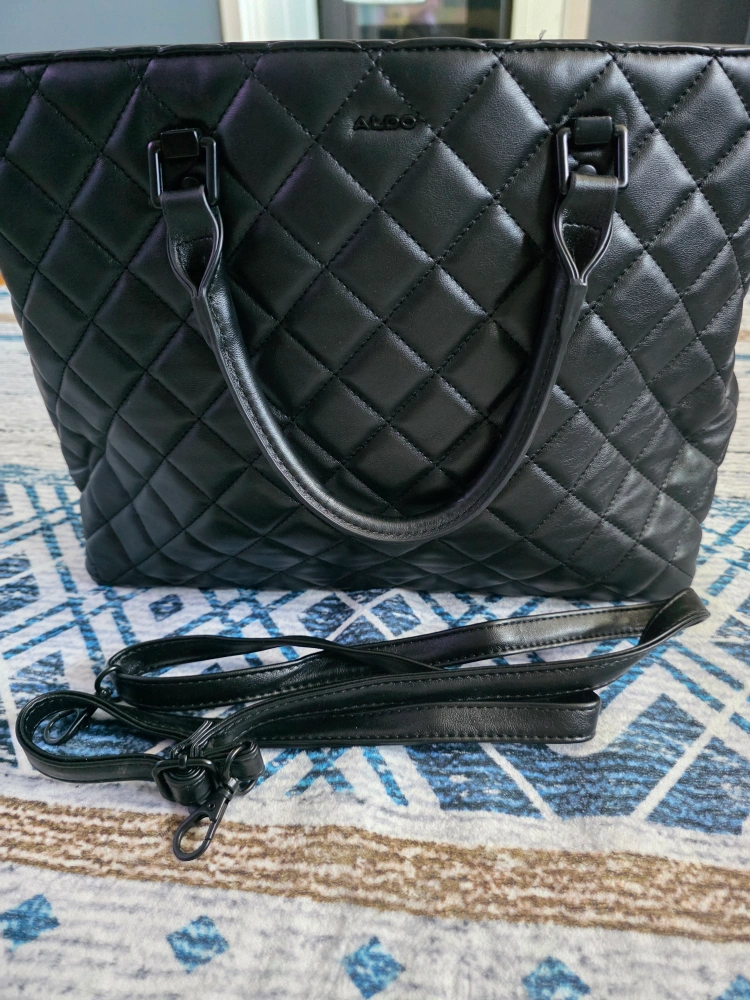 Selling a stylish ALDO tote bag in black! It features a classic quilted design and is in great condition. Perfect for carrying your essentials with a touch of elegance. never used it.