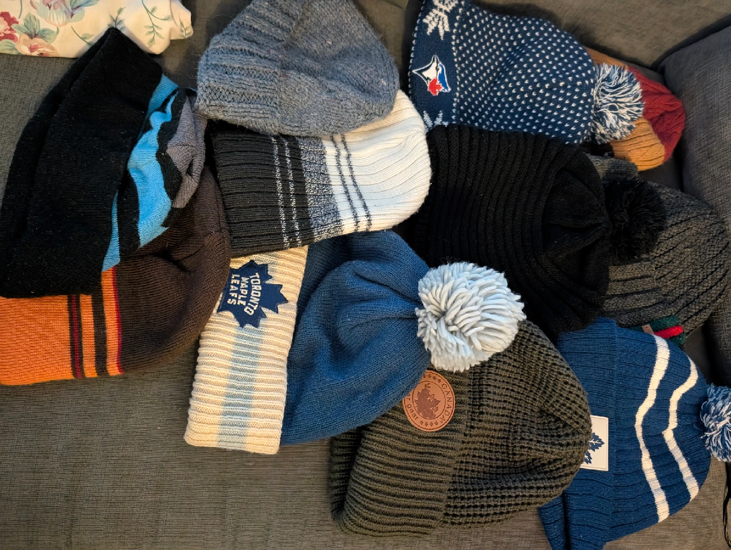 A collection of toques featuring the Toronto Maple Leafs, Toronto Blue Jays, and other assorted styles! Perfect for keeping warm during those chilly Canadian winters. Variety of colours and designs available.