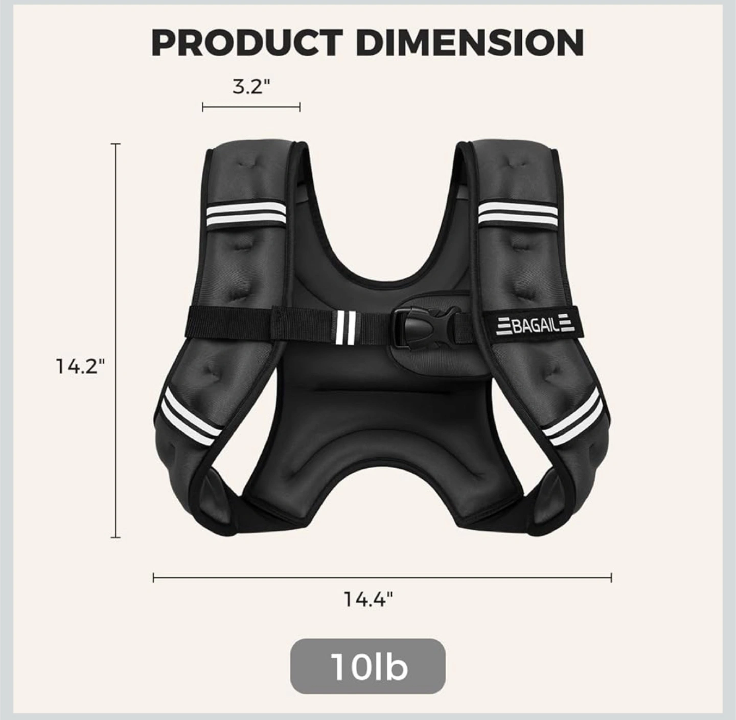 Get ready to level up your workouts with this BAGAIL 10lb weighted vest! It's in great shape and ready to help you add some extra resistance to your routine. Designed for safe exercise, this vest evenly distributes weight to prevent injuries. Plus, the reflective strips make nighttime workouts safer. It's black and weighs 10lbs, perfect for walking, weight loss, training, and running