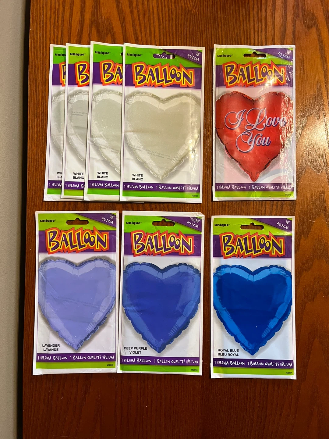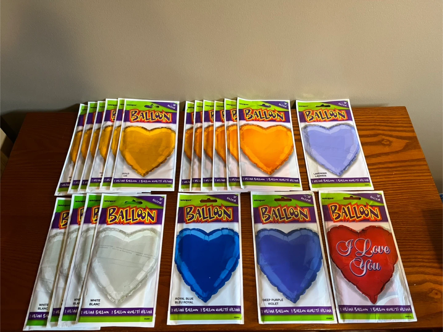 BNIP Assorted heart shaped 18” foil balloons. 20 balloons in total. Information is shown in the pictures. Selling all 20 together for $18. Cross posted.