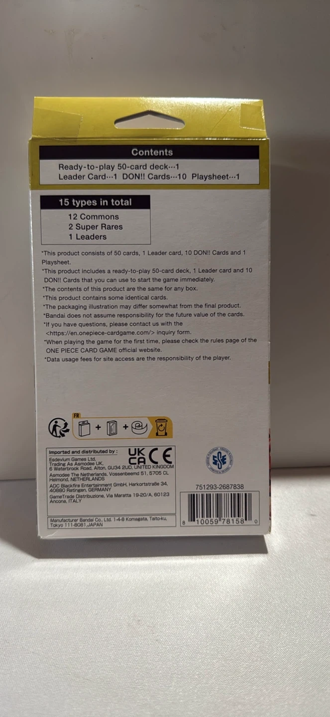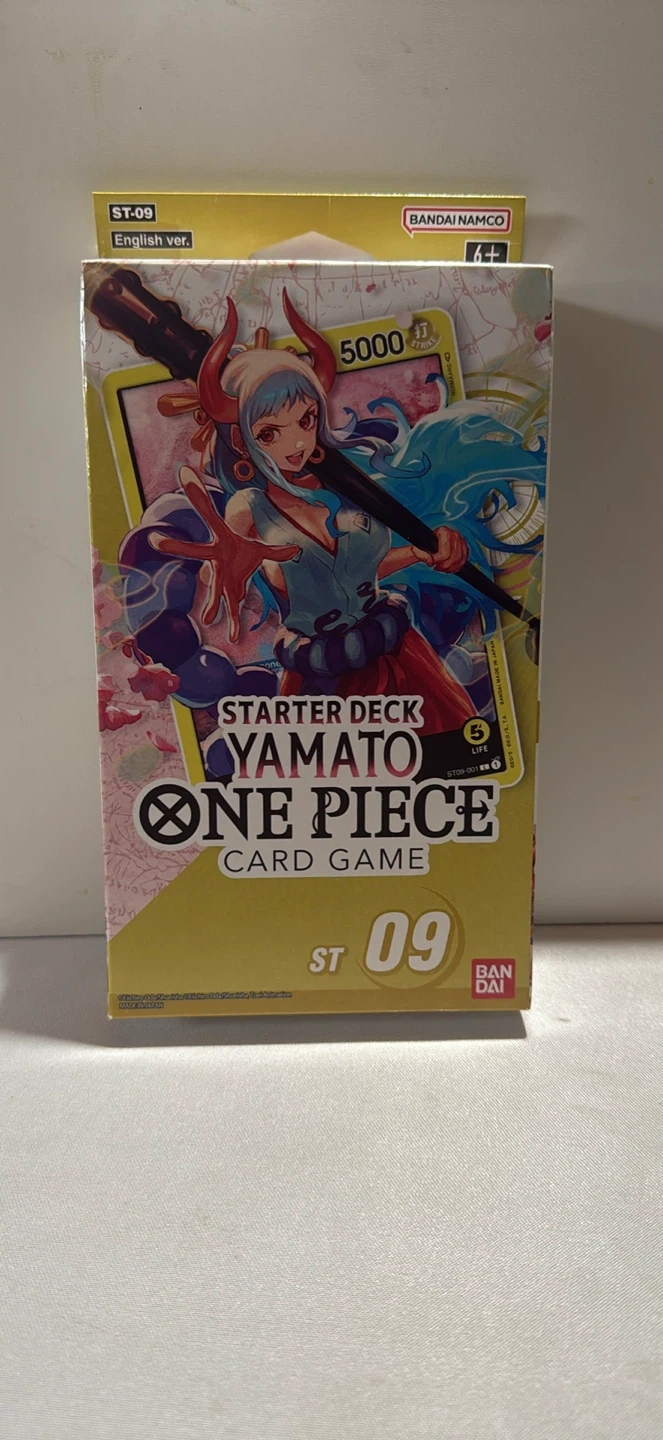 Selling a One Piece Card Game Starter Deck featuring Yamato (ST-09)! This ready-to-play deck includes 50 cards, 1 Leader card, 10 DON!! Cards, and 1 Playsheet. It contains 15 types of cards in total, including 12 Commons, 2 Super Rares, and 1 Leader. Get ready to start the game immediately with this complete package