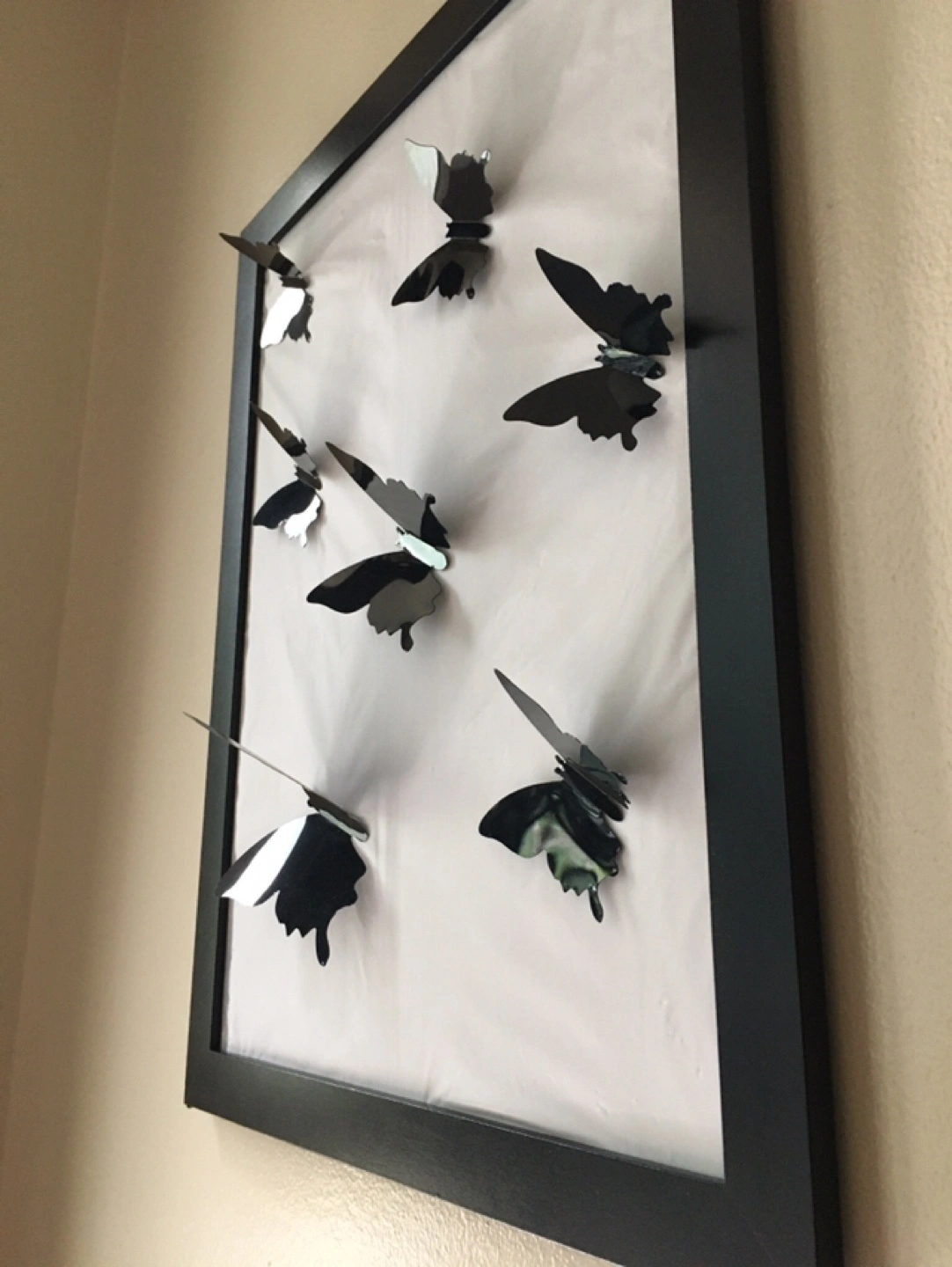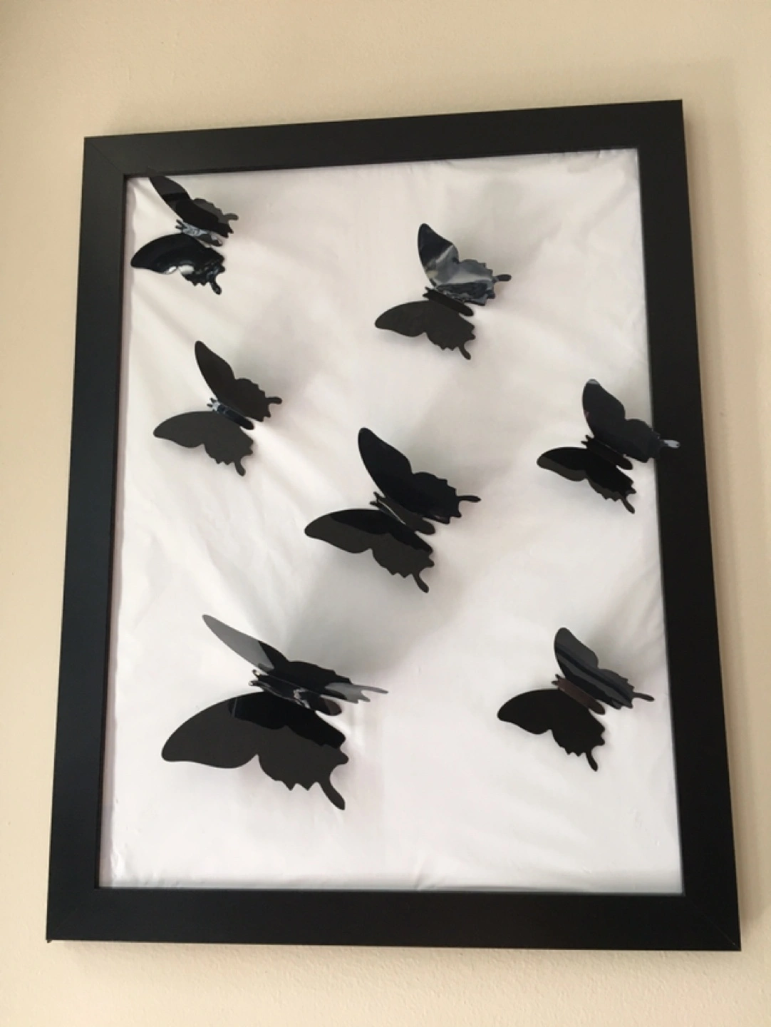 Looking to add a touch of elegance to your space? This beautiful piece of wall art features delicate butterflies in a sleek black frame. It measures approximately 12 inches by 16 inches. Perfect for any room! Pick up:toronto down town west(adelaide and niagara)