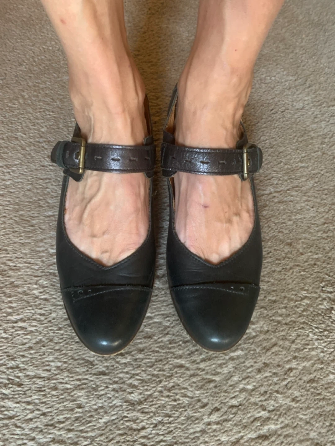 Cute black leather Mary Jane style shoes! They are in GREAT condition and ready for a new home. Hardly worn. Perfect for dressing up or down, these shoes are a versatile addition to any wardrobe. Genuine leather with little heel. Super comfortable. Just sitting in the back of my closet.