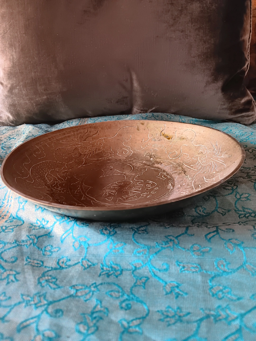 Selling a vintage brass decorative bowl. It has some signs of use but still looks great. Perfect for adding a touch of vintage charm to your home! Pick up only