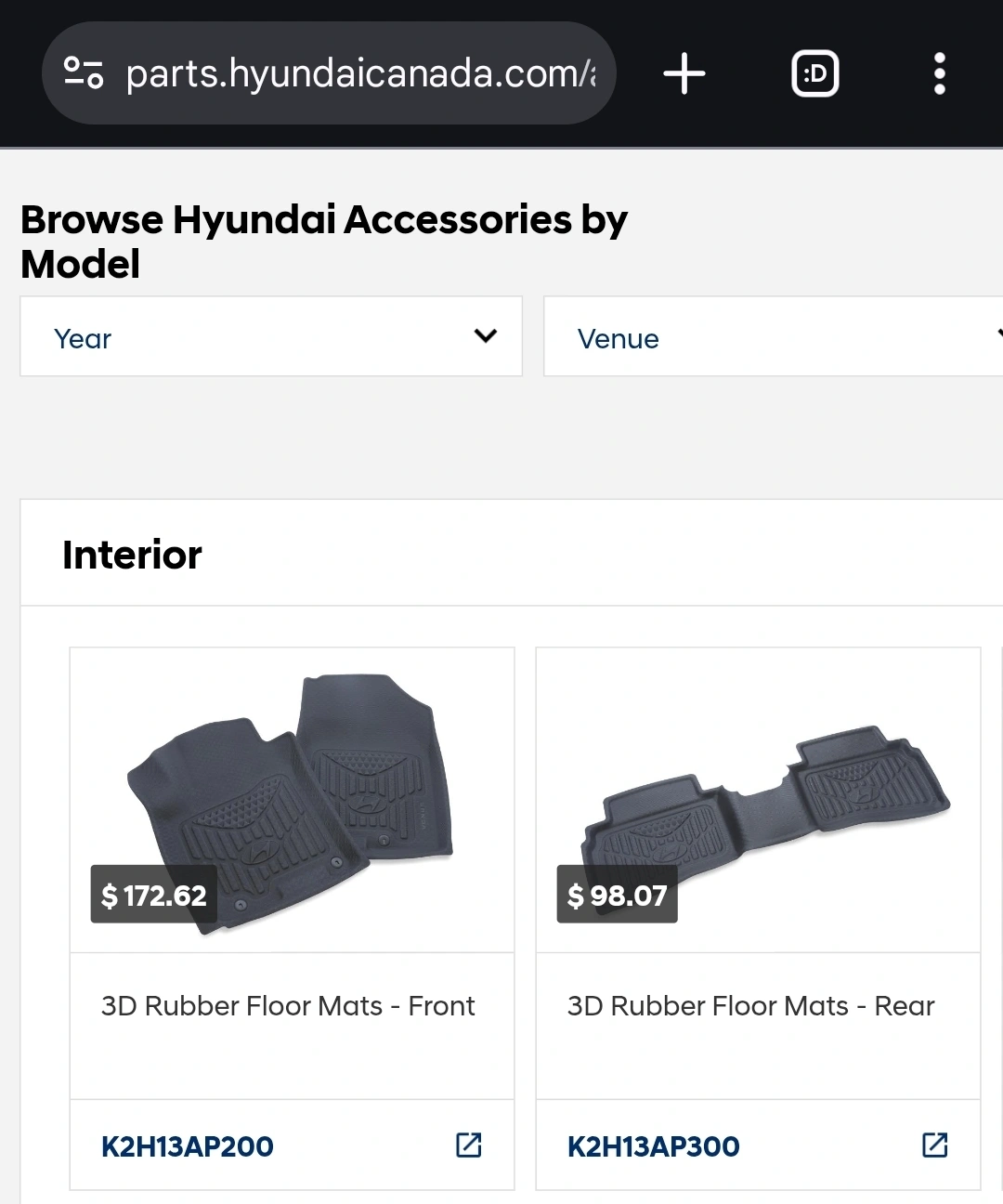 Pick up only. Location: near Queen and Dufferin. Retails for CAD 270 Selling a set of black floor mats for a Hyundai Venue. They are in great condition and will keep your car clean!