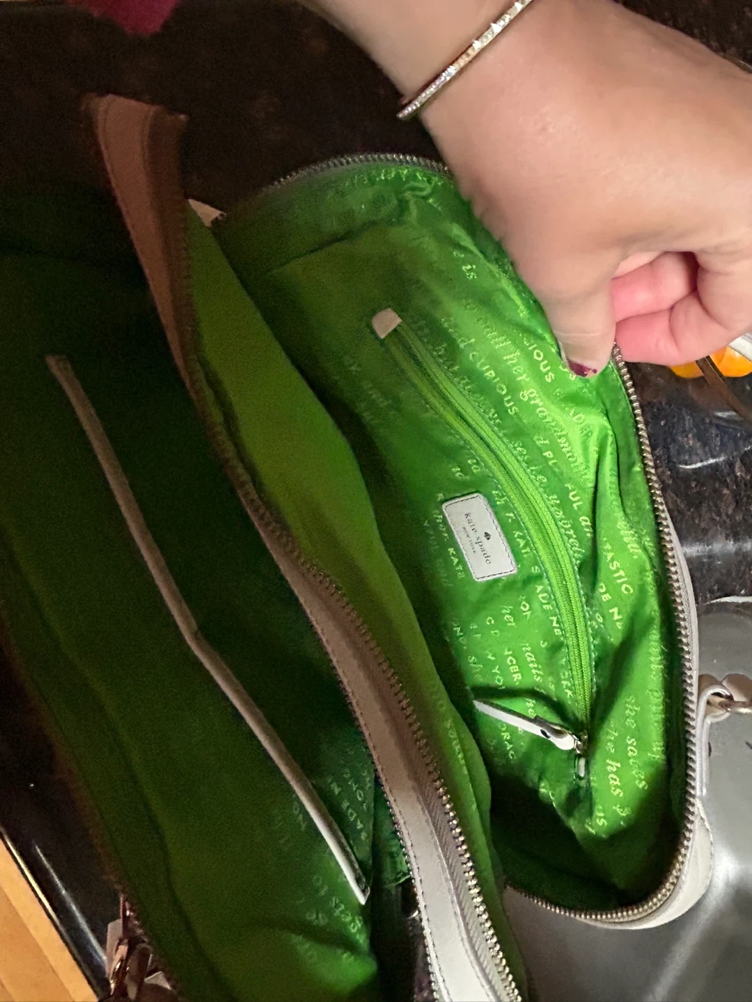 Selling a Kate Spade satchel handbag. It's a lovely neutral colour and in good condition. Perfect for everyday use!