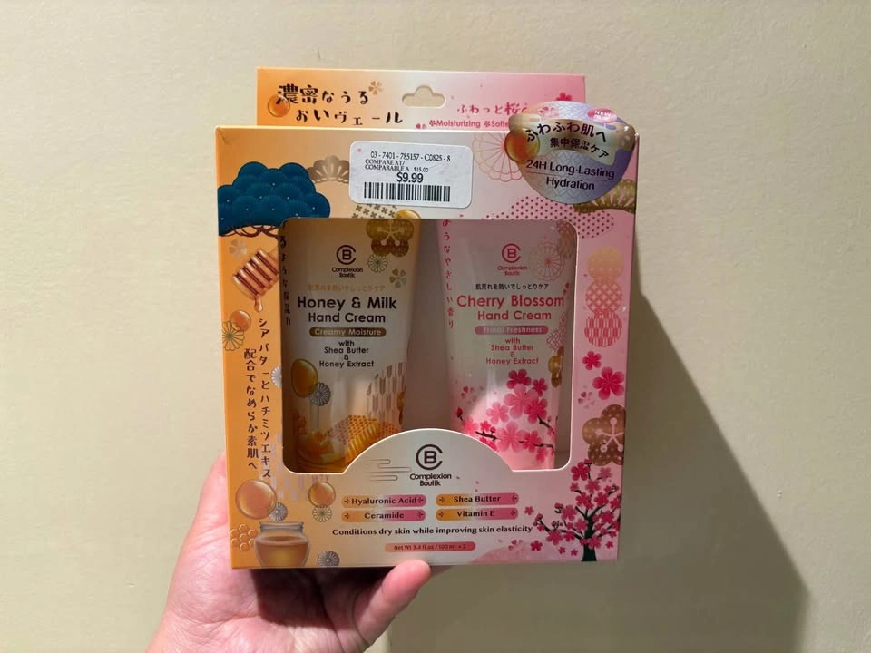 New, never used hand cream and body lotion. Peach hand cream - $5 Put a little in your hand and fully spread to the whole palm and back of the hands. Use after washing hands. Great skin care and have a great peach scent! Hand cream set of 3 - $8 Great for gifts and self use with three different scents! Easy to carry. Strawberries, milk and peach! Honey milk and cherry blossom Handcream - $10 Popular scents, great moisturize! Strawberry milk body lotion - $8 Strawberry scent and smells awesome when you're at an event or friends gathering! All prices based on the original price when I bought them. Rounded up price.