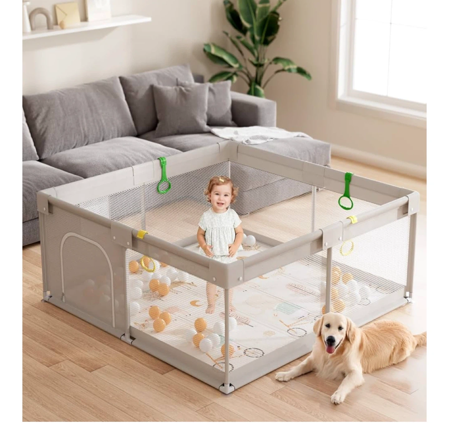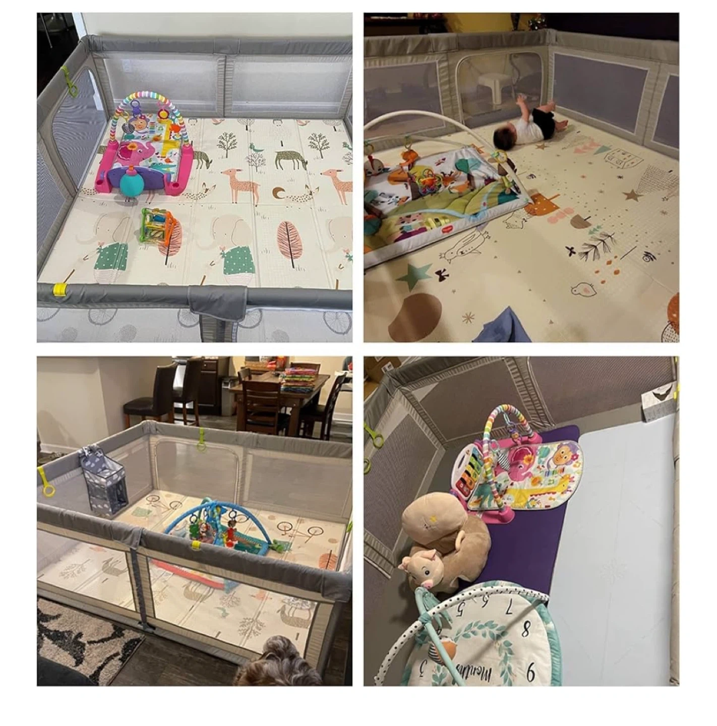 Selling a Mloong baby playpen, gray colour, complete with a mat. It's in great shape and perfect for indoor and outdoor use. Provides a safe and fun activity center for babies and toddlers!