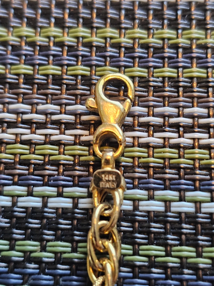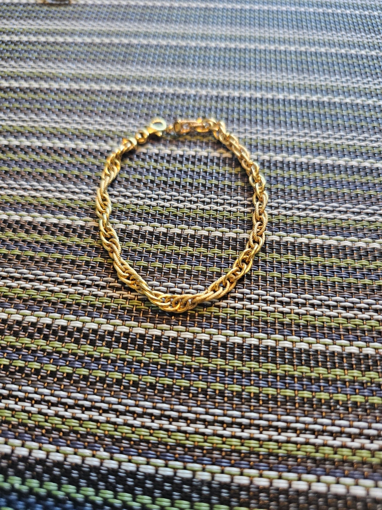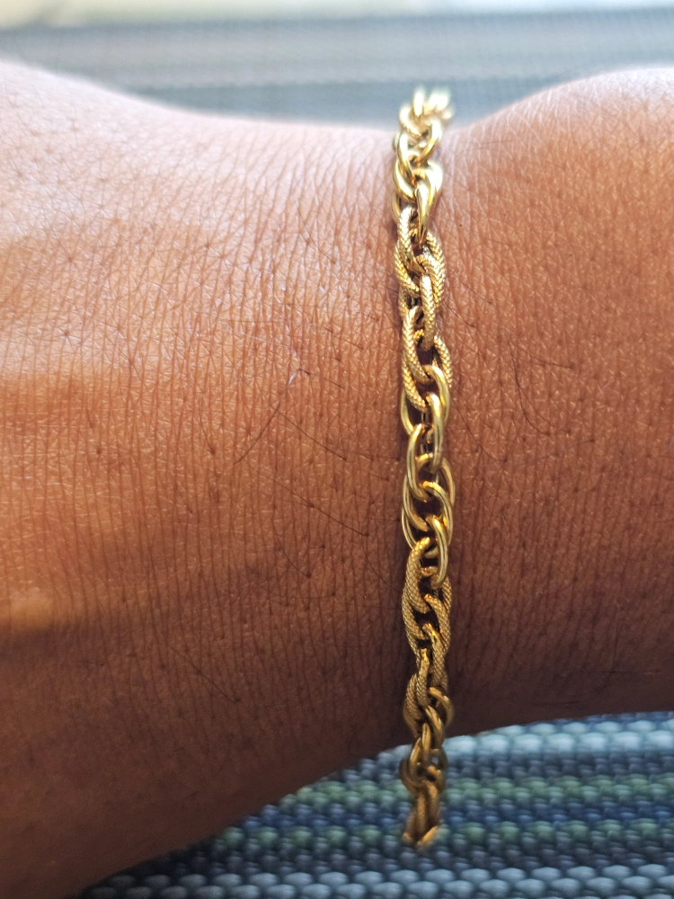 Selling a beautiful 14K gold rope chain bracelet. It's approximately 7.5 inches in length and weighs 4.1 grams. Made in Italy and in great condition!